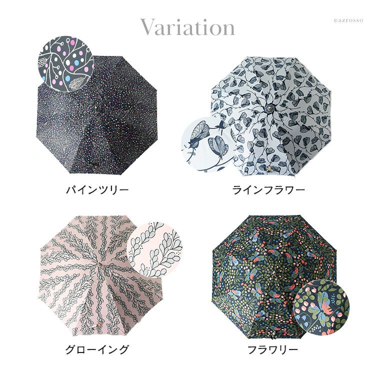 色鮮やかな松の木モチーフ【パインツリー】、シックな色合い芸術的なタッチの【ラインフラワー】、遊びゴコロがありながら優しい色使いの【グローイング】、個性的なデザインが目を惹く【フラワリー】の雨の日の憂鬱な気分を晴れやかにする4パターンをご紹介します。