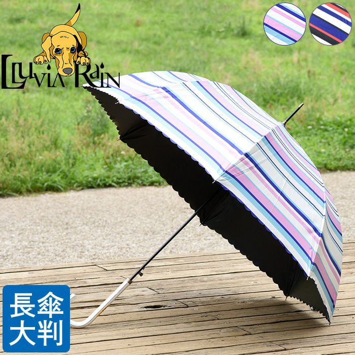 北欧テイストのボーダー柄がおしゃれなワンタッチジャンプ傘。UVカット率99%以上で日傘としても使える優れもの。クールでかっこいい大人女性の為の傘ブランド Lluvia rain (ルビアレイン)/ マルチボーダー 雨傘 ボーダー柄 長傘 晴雨兼用 傘 レディース 大判 ジャンプ ネイビー 紺 レッド 赤 ピンク ブルー 青