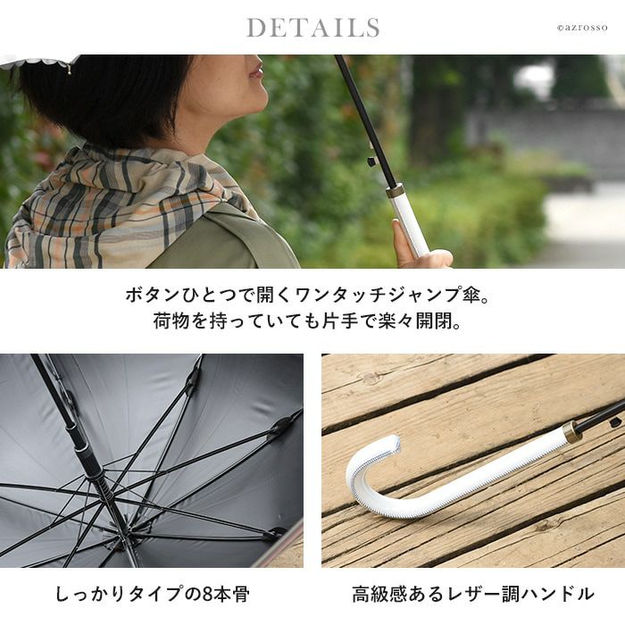 ▼特徴:ワンタッチ|ジャンプ式|8本骨|UV99%カット|99%遮光|長傘|大きめ