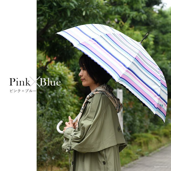 4. マルチボーダー 雨傘 ボーダー柄 長傘 晴雨兼用 傘 レディース 大判 ジャンプ ネイビー 紺 レッド 赤 ピンク ブルー 青