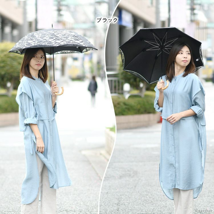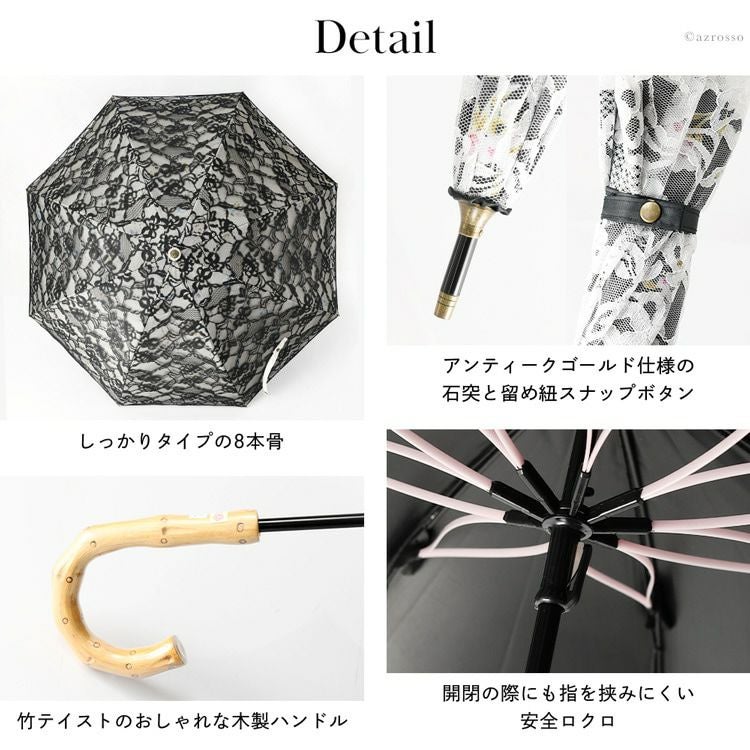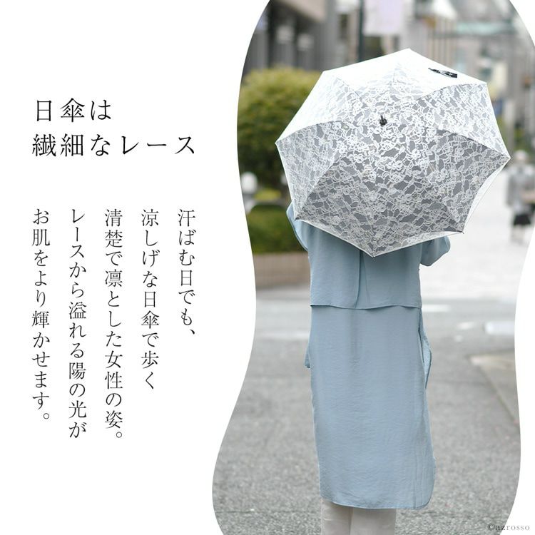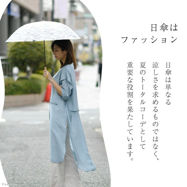 晴雨兼用 日傘 レース 長傘 ラッセルレース さくら骨 二重張りレース 花柄 マラガバリア 二重張りフラワー