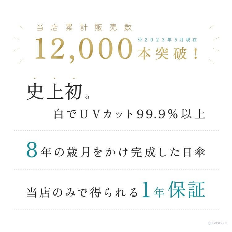 8年の歳月をかけて開発された、高い強度のポリエステルの生地を酸化チタンと特殊鉱物のコーティング剤で包んだ新素材「プレミアムホワイト」を生地に使い、ボーイング飛行機に使用するカーボンファイバーを親骨に使用することで、ゲリラ豪雨にも耐えられるほど雨に対する強度がありながら、軽量化も実現しました。