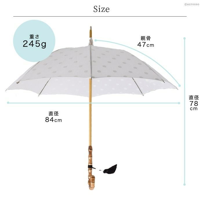 ワカオ コットン日傘 ドット 日本製 長傘 綿100 WAKAO バンブー タッセル 水玉 ホワイト 白 上品な日本ブランドの日傘