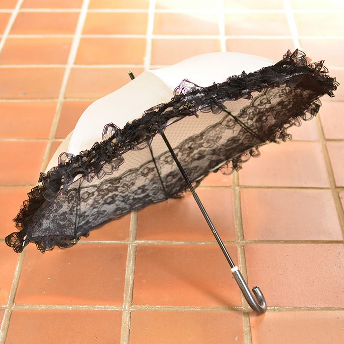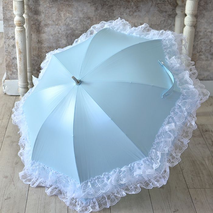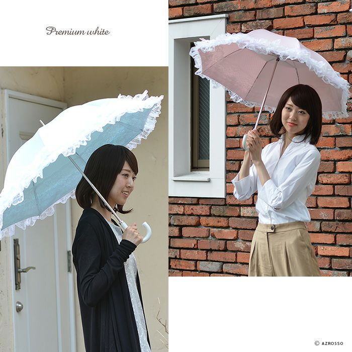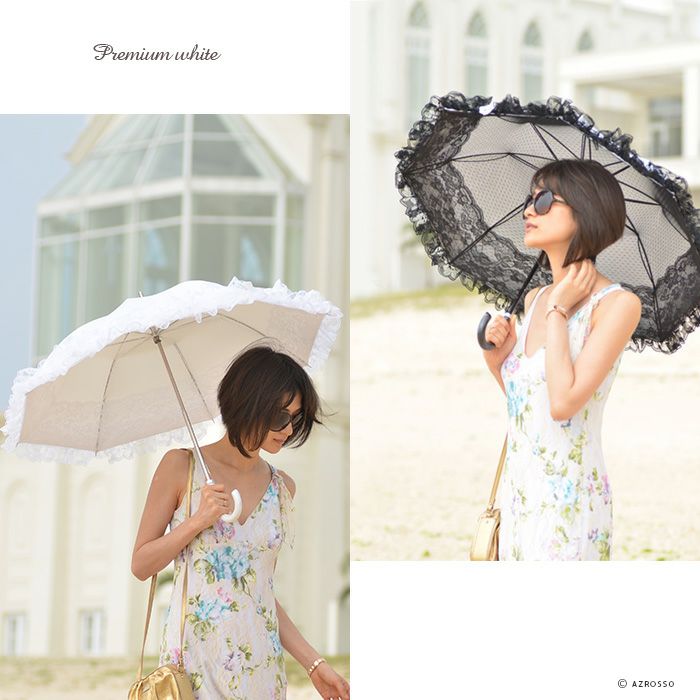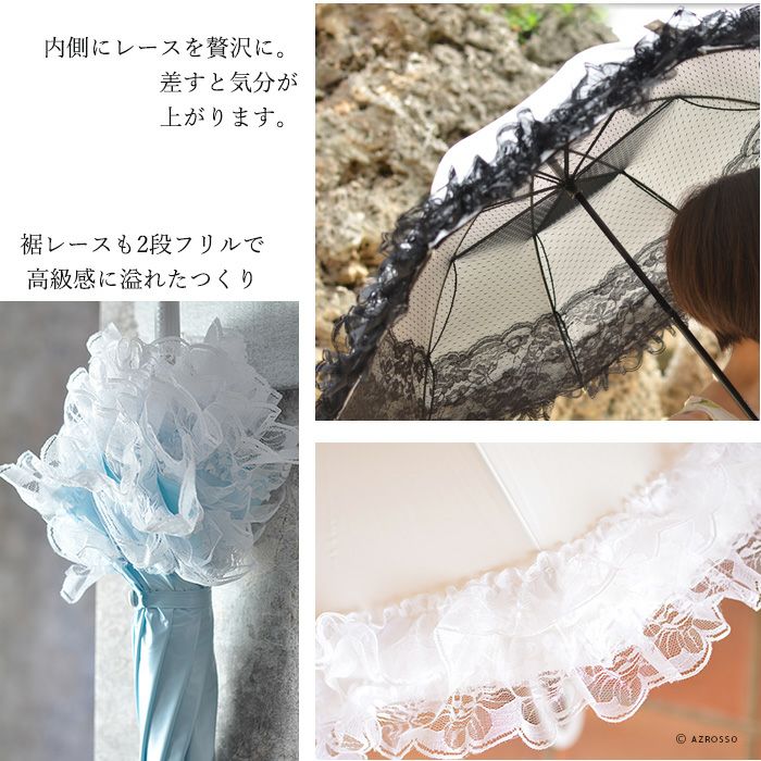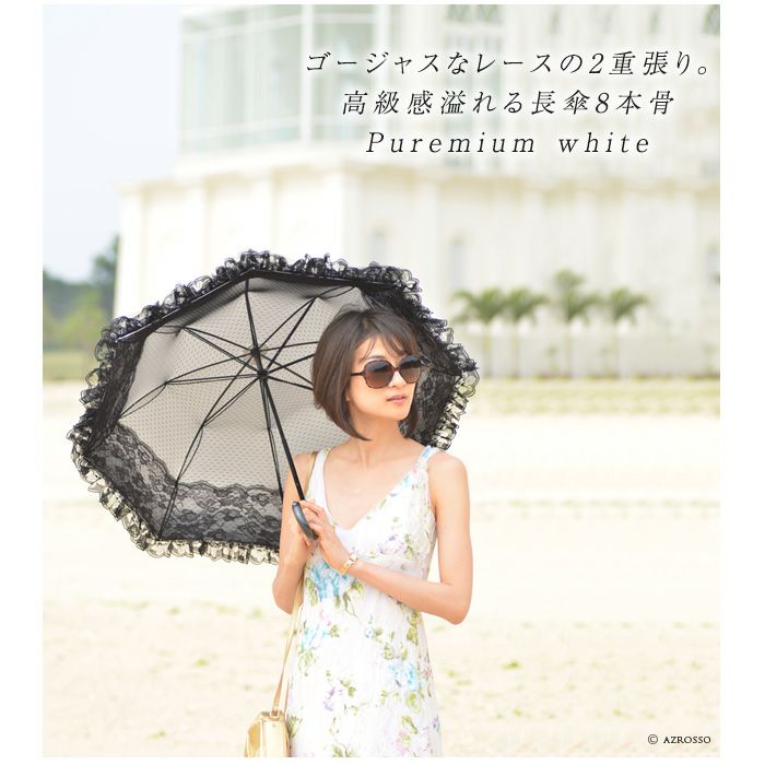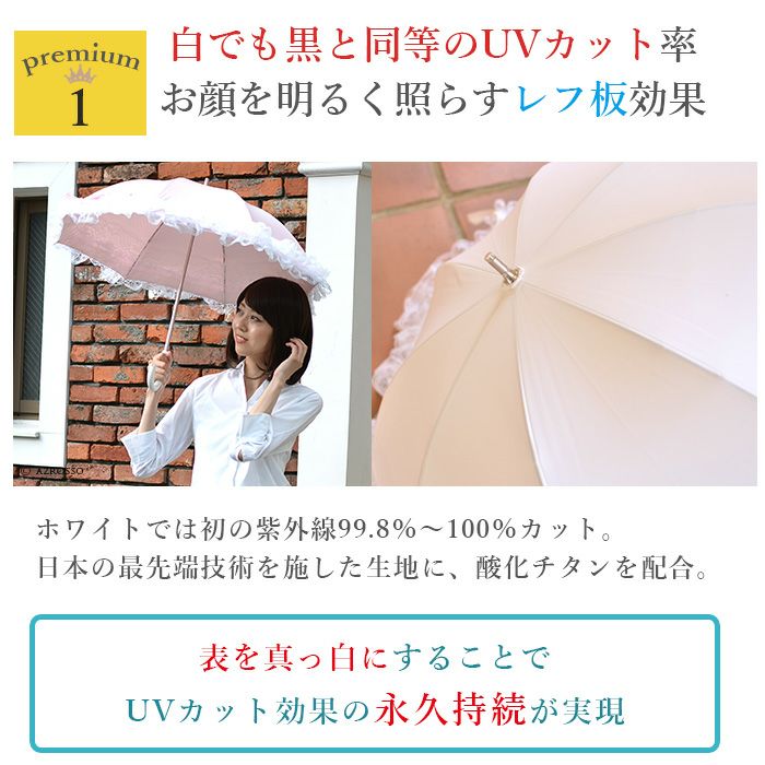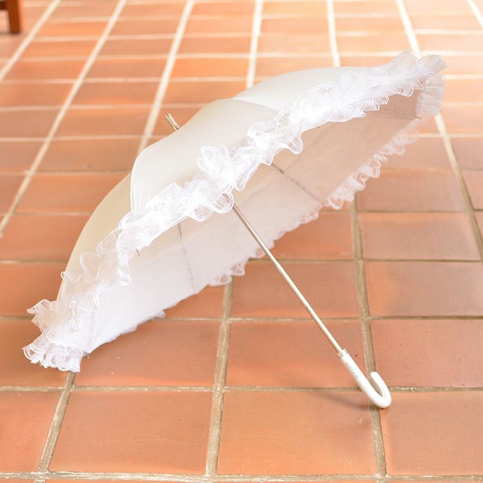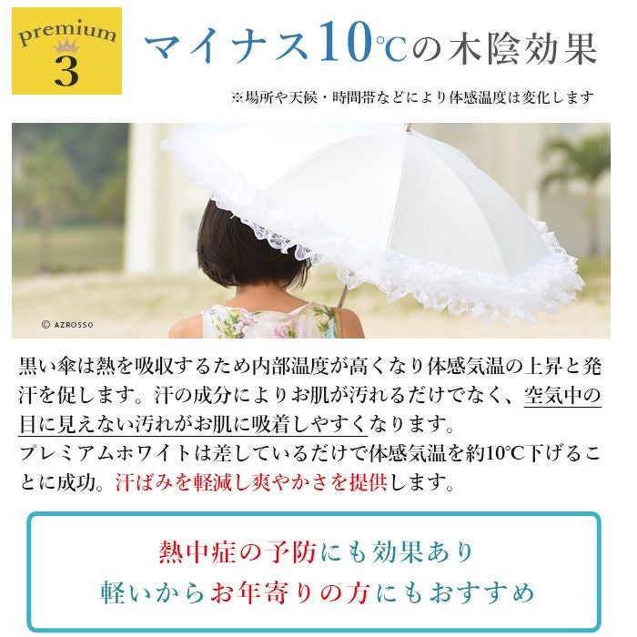 華やかな2段フリルレースで暑い日も気分を上げてくれる クールダウン効果のある日傘 日傘 2重張りフリルレース 長傘 ユビオン プレミアムホワイト 結婚式やリゾート お出かけに 白でもUVカット99% 驚きの殺菌力と抗菌力をもつ日傘