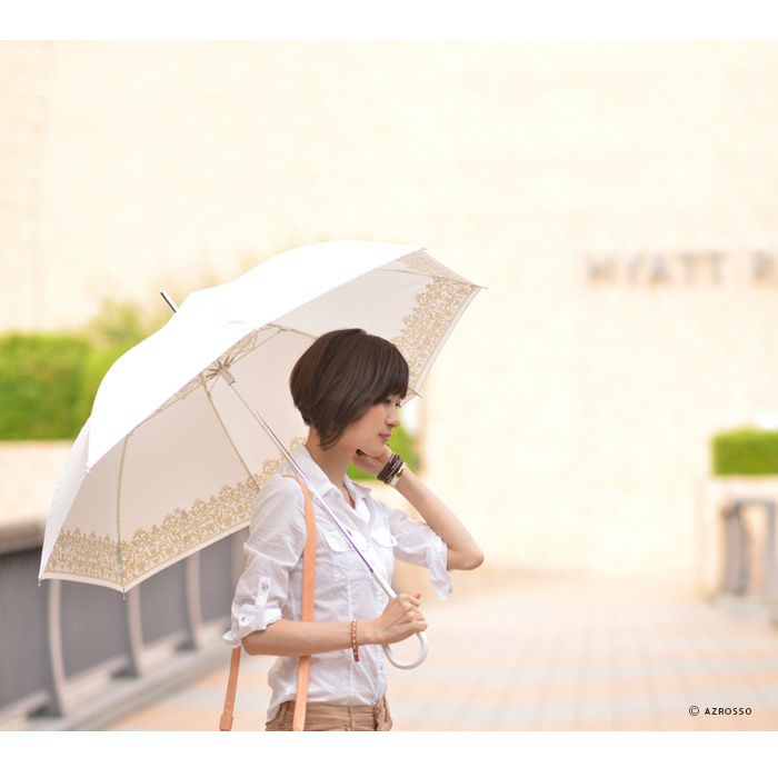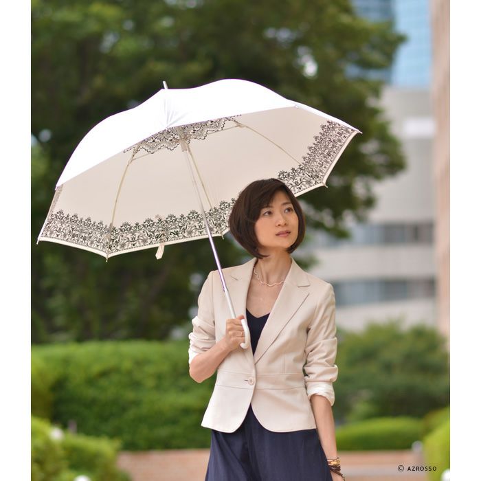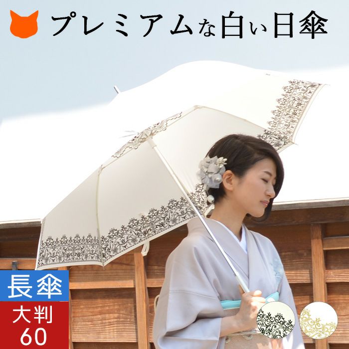 UVカット 白 日傘 晴雨兼用でかわいい premium white 海 ゴルフ スポーツ観戦 旅行 日本製 紫外線カット 大判 大きい 60サイズ 超軽量 pw3920/ 日傘 UVIONプレミアムホワイト 大判 60サイズ 長傘 アラベスク