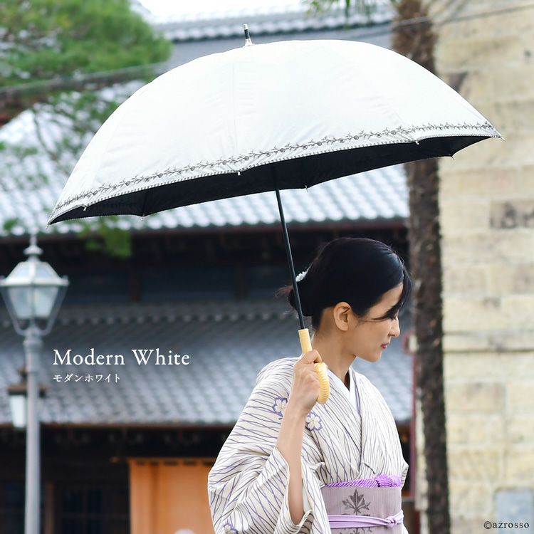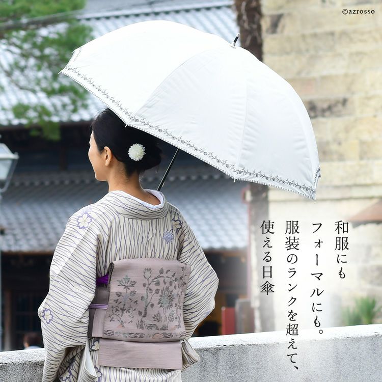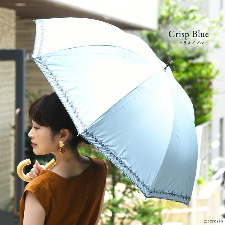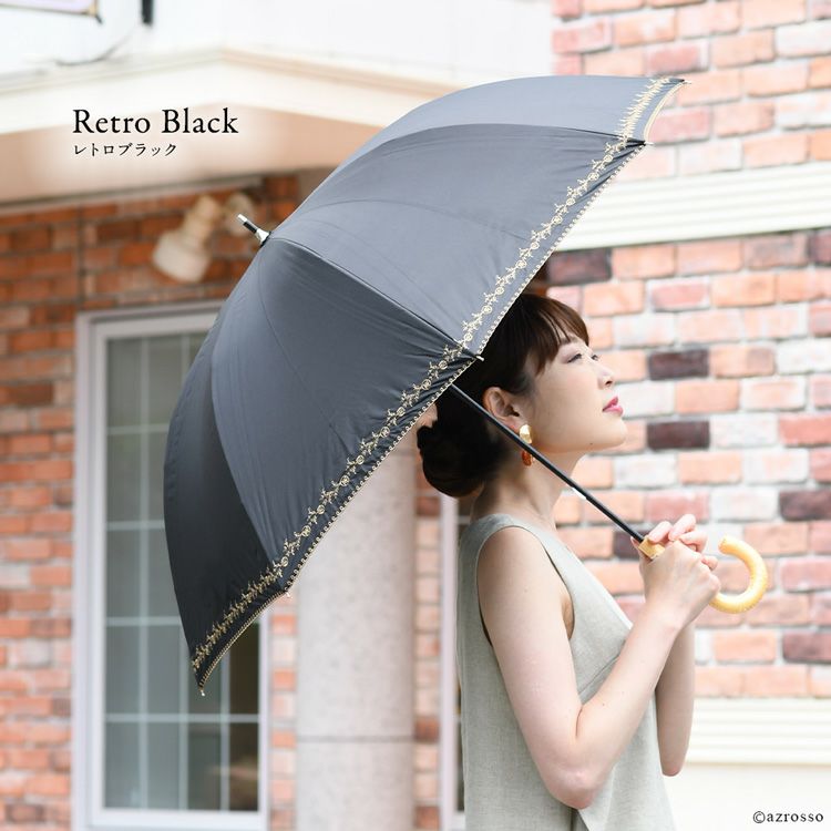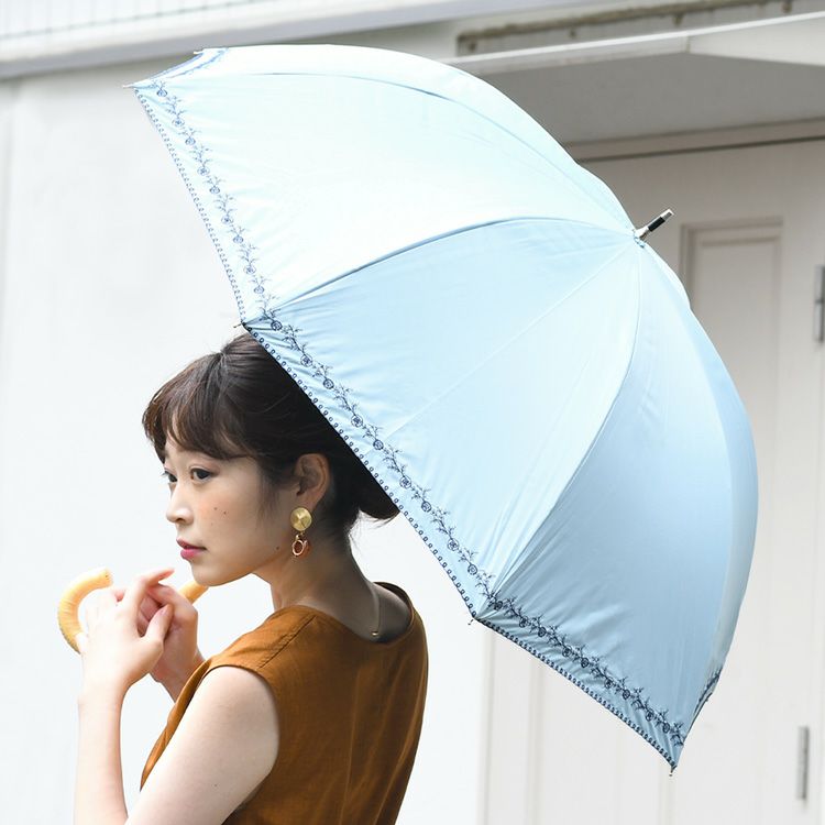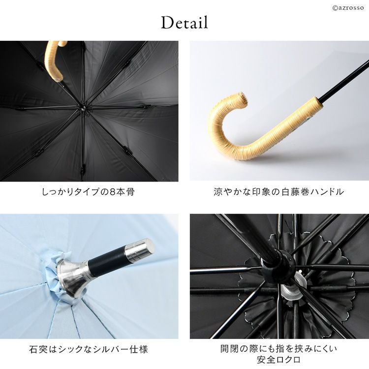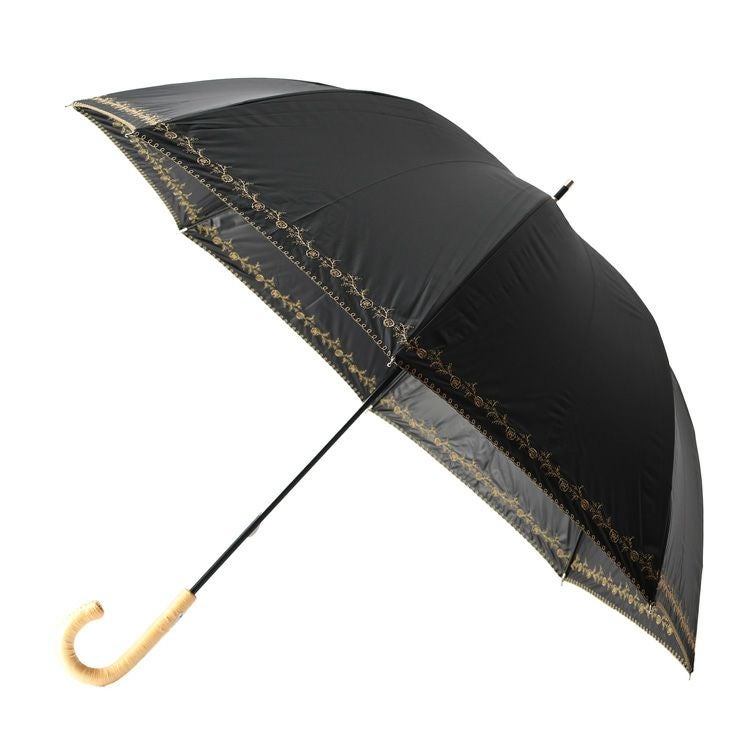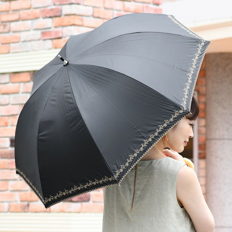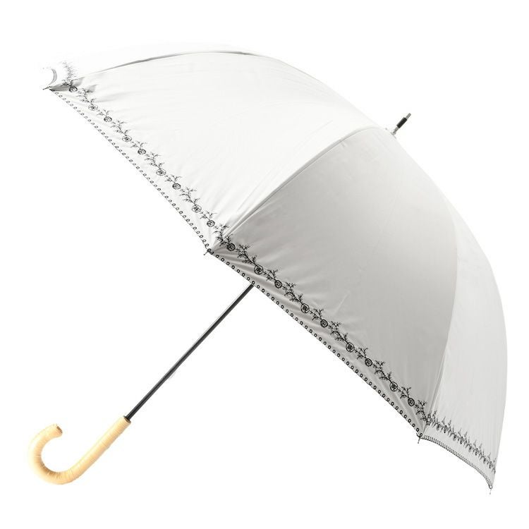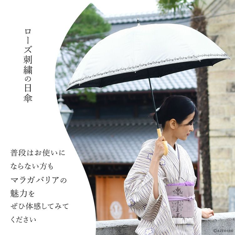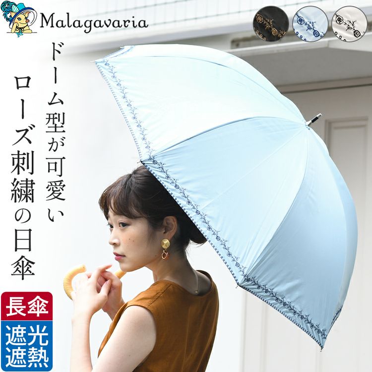日傘 レース 長傘 刺繍 プチローズ 花柄 バラ 大判 ドーム型 ブラック ブルー サックス オフホワイト 白 マラガバリア