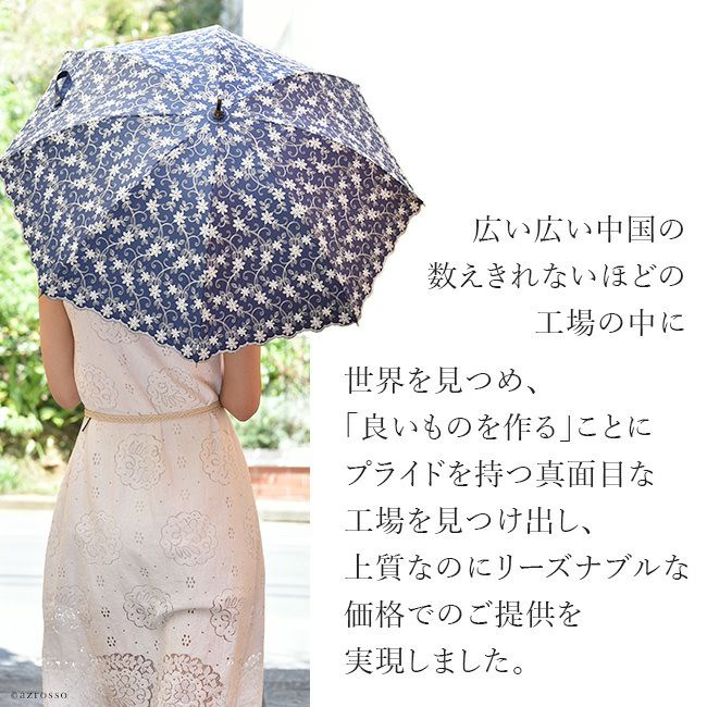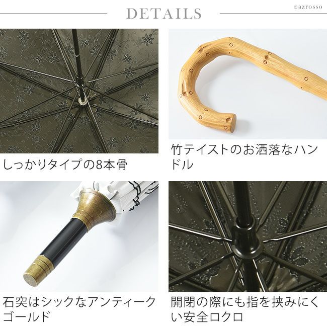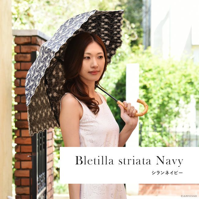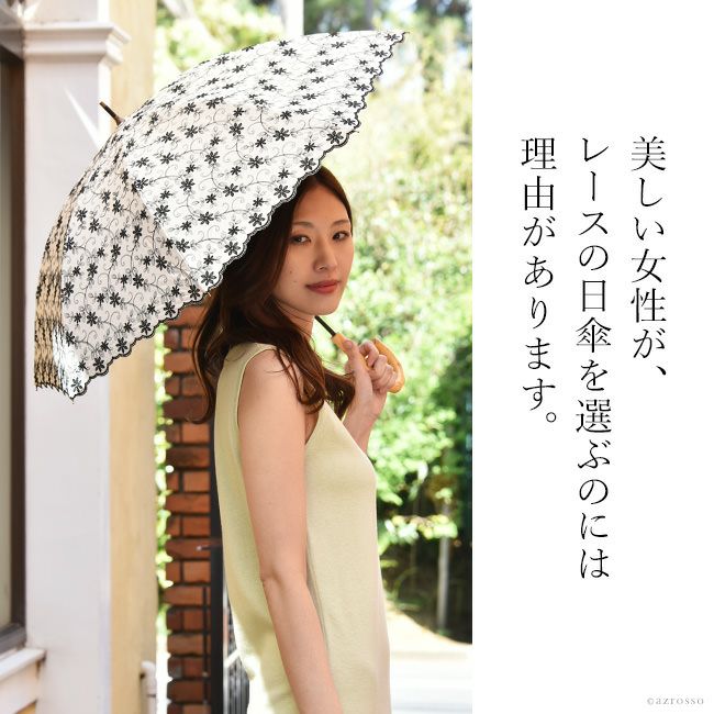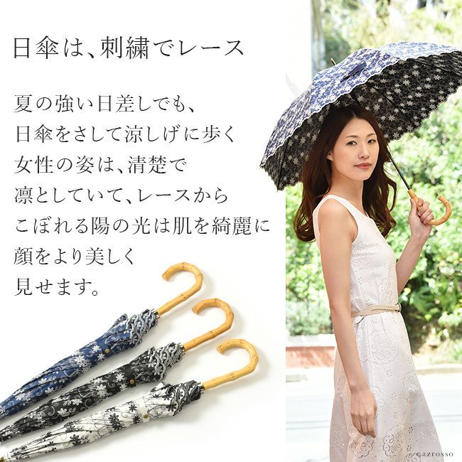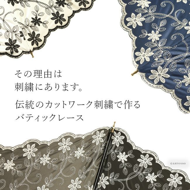 日傘 レース 長傘 刺繍 バティックレース 花柄 ブラック 黒 ホワイト 白 ネイビー 紺 マラガバリア