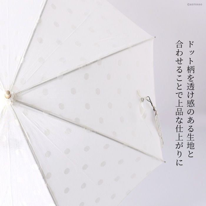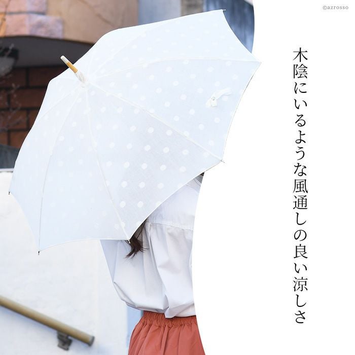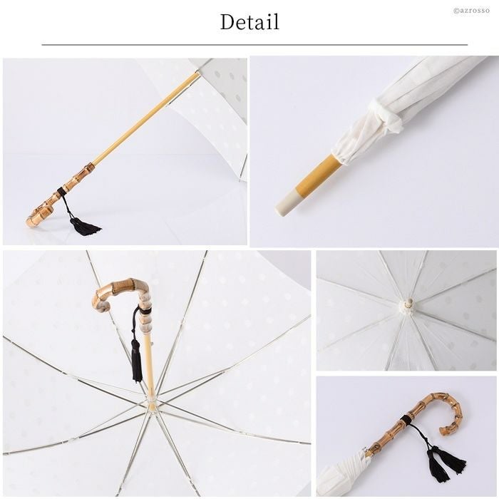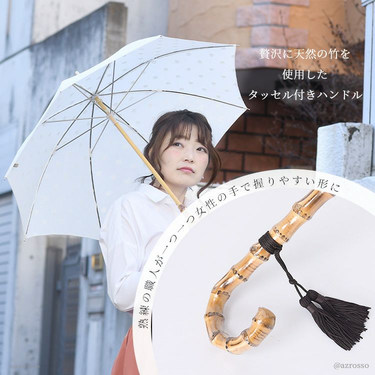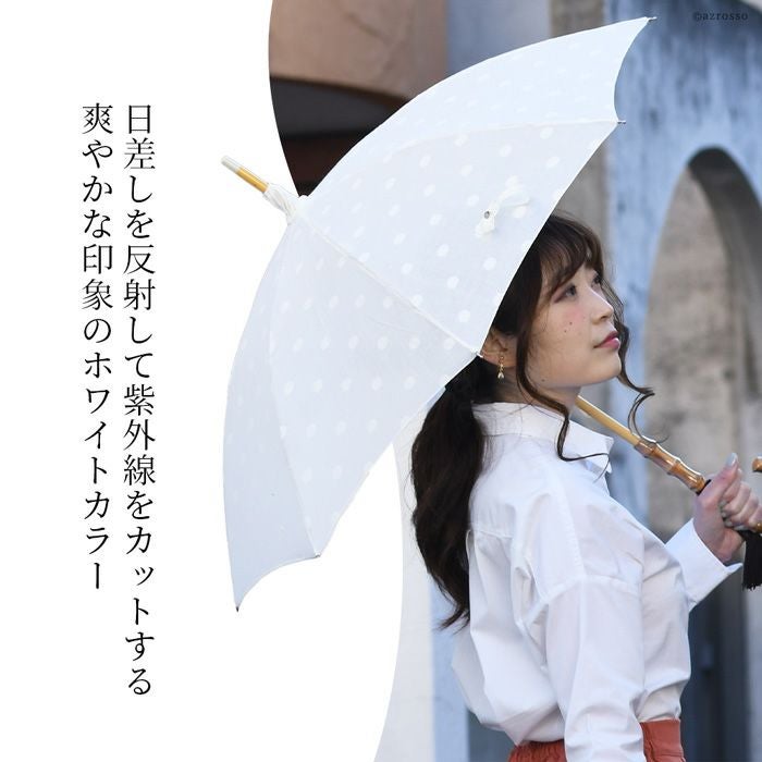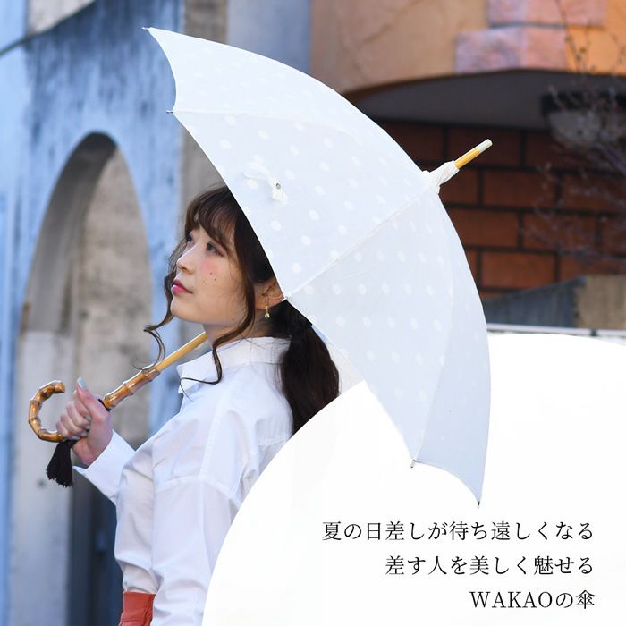 ワカオ コットン日傘 ドット 日本製 長傘 綿100 WAKAO バンブー タッセル 水玉 ホワイト 白 上品な日本ブランドの日傘