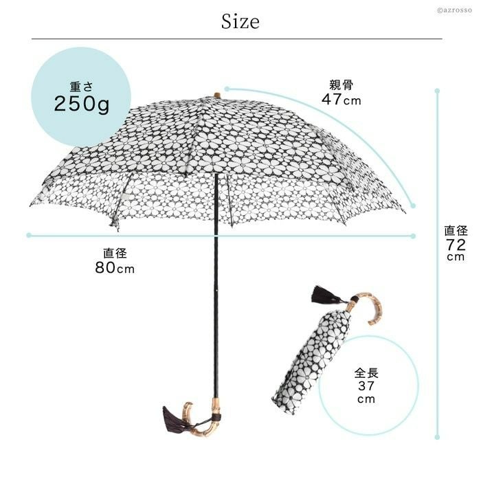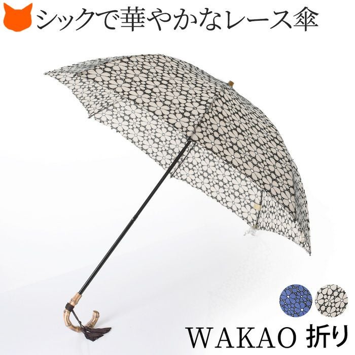 ワカオ 日傘 折りたたみ レース刺繍 日本製 WAKAO コットン 綿100 バンブーハンドル タッセル 寒竹