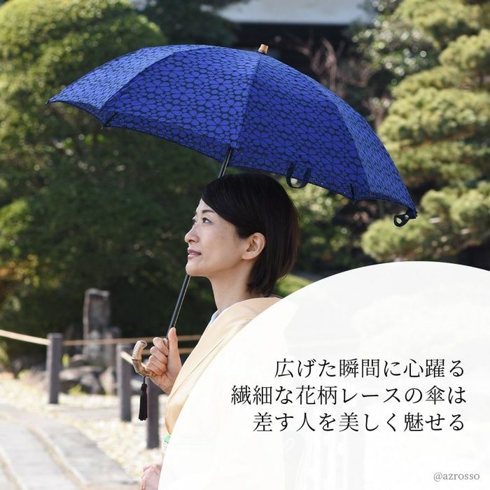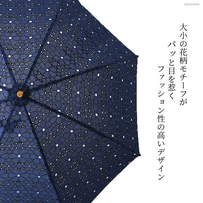 バンブー風木製ハンドルが人気の布製レースの日傘 可愛い花柄ではっ水加工の晴雨兼用なのにリーズナブル 大判50の大きめサイズ 海 ゴルフ スポーツ観戦 旅行 デートをおしゃれにUVカット 夏は爽やかに紫外線カット レース 日傘 晴雨兼用 バンブー風ウッドハンドル 長傘 大判