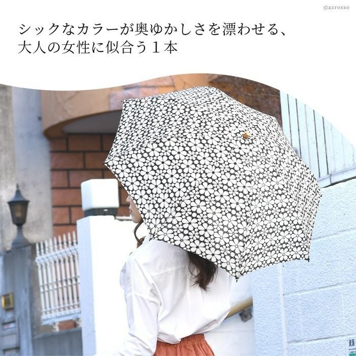 ブラックフォーマルに合わせやすい花柄×黒のシックで華やかな折りたたみ傘。コンパクトに持ち運べる上に晴雨兼用で、UVカット率は99%だから、夏の法事、お墓参りの際に日傘として日焼け予防、熱中症対策にも便利。 晴雨兼用 折りたたみ傘 日傘 UVカット 99% 遮光 軽量 雨傘 コンパクト レディース ブラック 花柄 折り畳み日傘 黒 刺繍