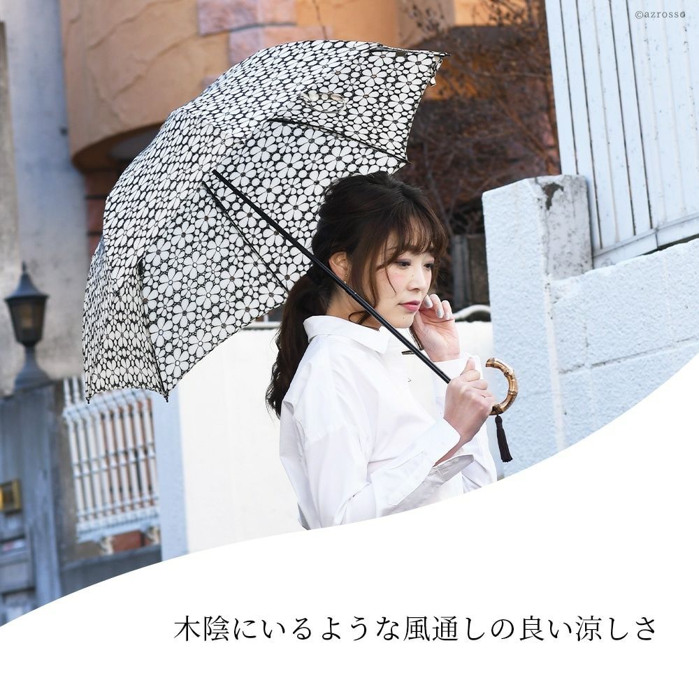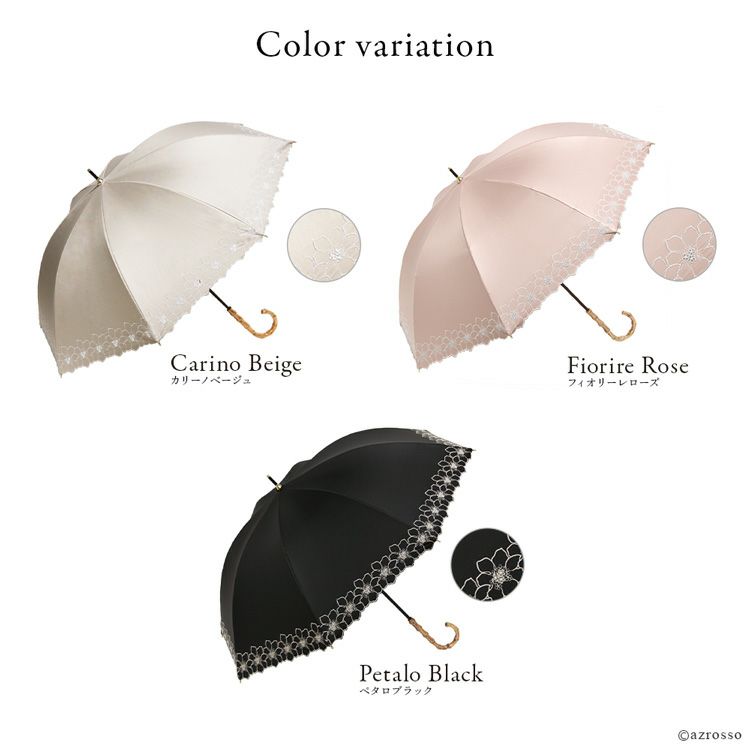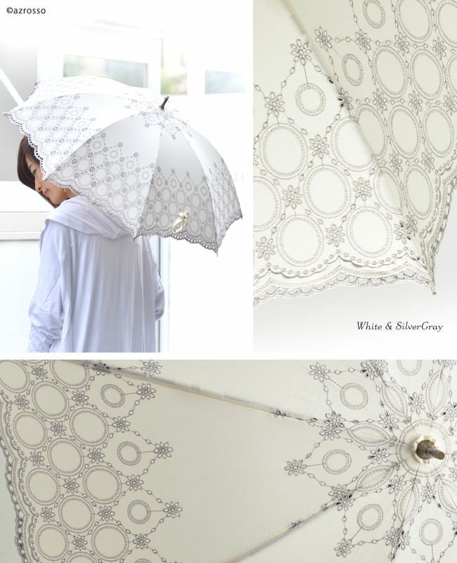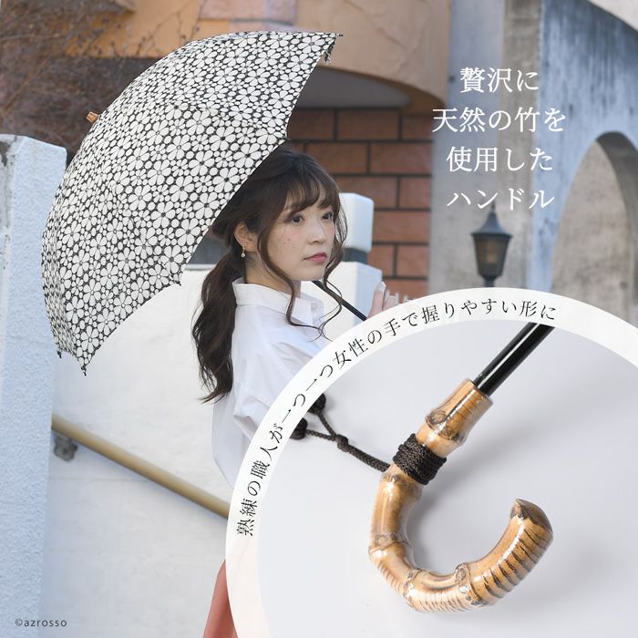 可憐で上品なグレースフラワー刺繍の日傘。遮光率99.99%・UVカット率99.9%・遮熱効果あり。和装・着物・浴衣にも似合うMalagavaria(マラガバリア)の美しい長傘 刺繍 日傘 長傘 一級遮光 花柄 UVカット 遮熱 涼しい 軽量 50cm レディース グレースフラワー刺繍