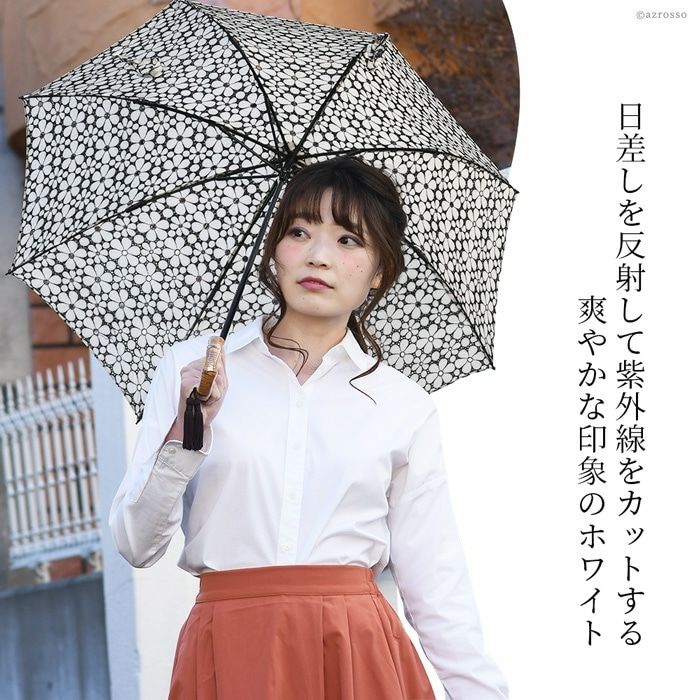 傘に溶け込むデイジーフラワー刺繍が上品な軽量日傘。遮光率99.99%・UVカット率99.9%・遮熱効果あり。突然の雨もしっかり弾く晴雨兼用、和服にもフォーマルにも似合うMalagavaria(マラガバリア)の日傘 刺繍 日傘 長傘 1級遮光 花柄 UVカット99% 遮熱 涼しい 軽量 50cm 晴雨兼用 レディース フラワーボーラー刺繍