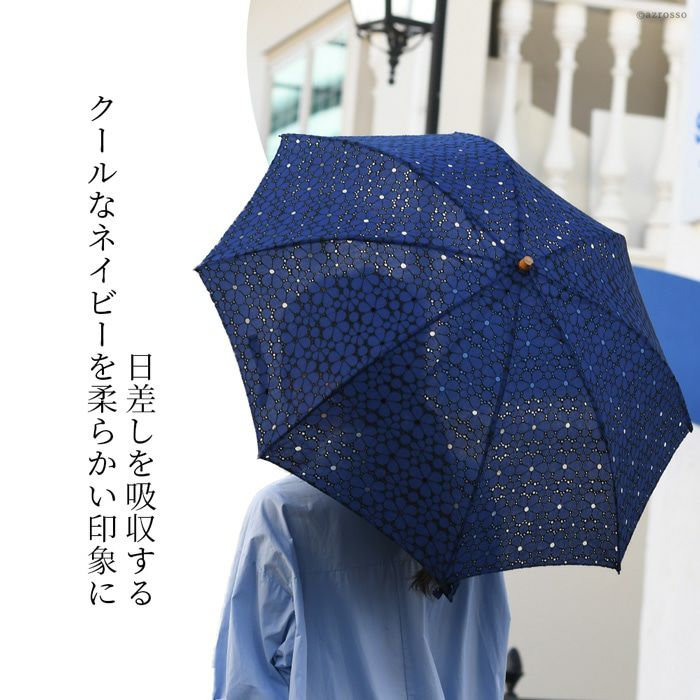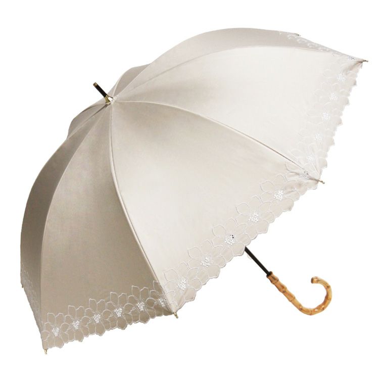 優美な花柄刺繍がエレガントな晴雨兼用日傘「ガーデンフラワー」完全遮光とUVカットで、紫外線カット。UPF50。裏地黒は遮光性を高め、照り返しを防止。上品スタイルが叶う、8本骨で丈夫な長傘タイプ 刺繍日傘 晴雨兼用 長傘 遮光100 完全遮光 レディース UVカット100 裏地黒 遮熱 upf50 花柄 おしゃれ かわいい 母の日 プレゼント ギフト