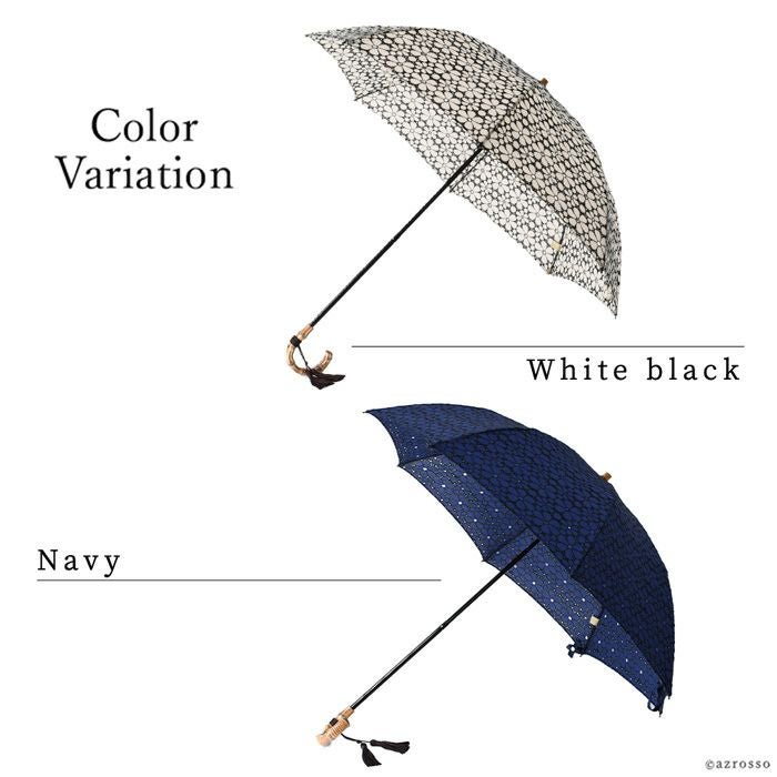 トライバル柄の布製×レース刺繍が美しい日傘「ロールカットレース」。 和装 着物 浴衣にも似合うレトロデザイン Malagavariaの長傘は誕生日プレゼントにもおすすめ/ 日傘 レース 長傘 刺繍 ロールカットレース 布製 ホワイト 白 ネイビー ブルー 青 マラガバリア