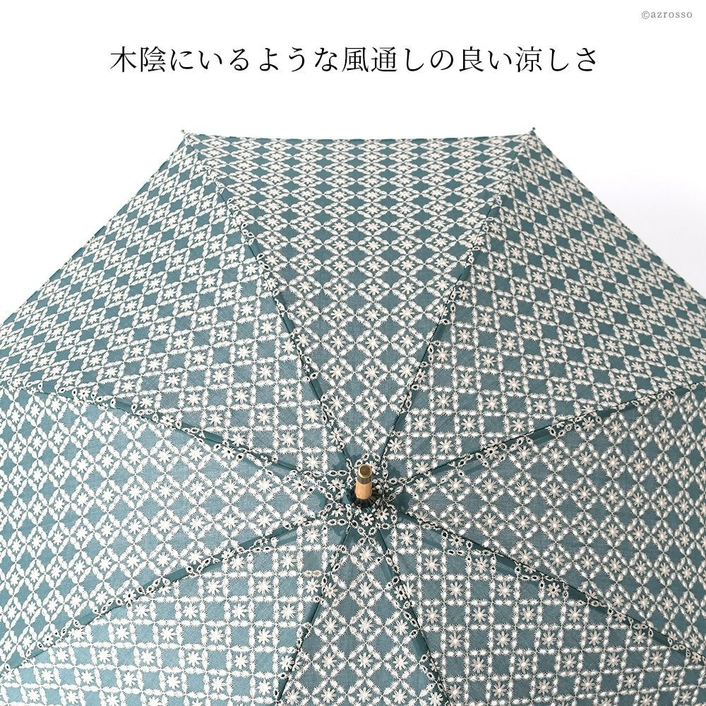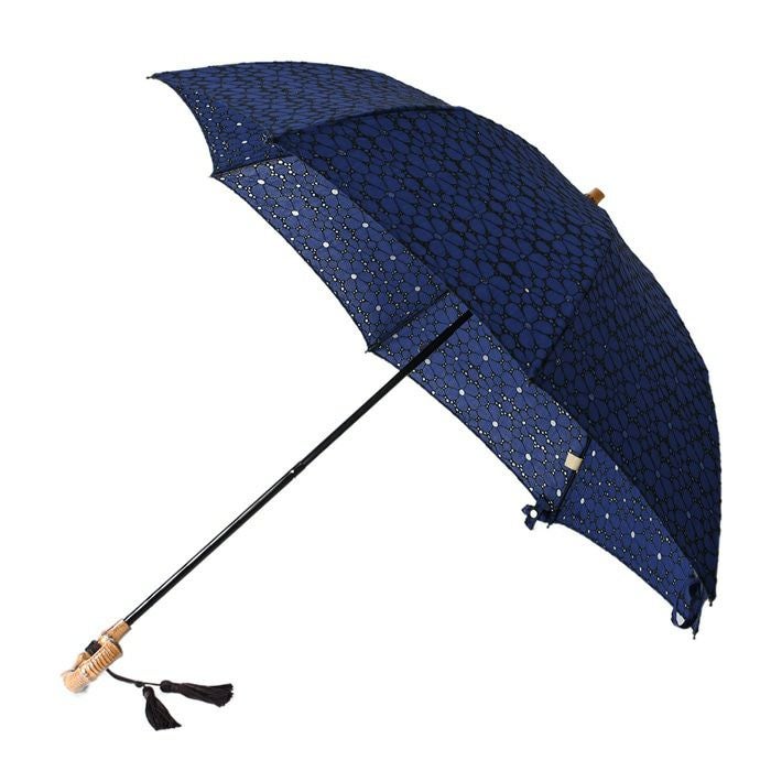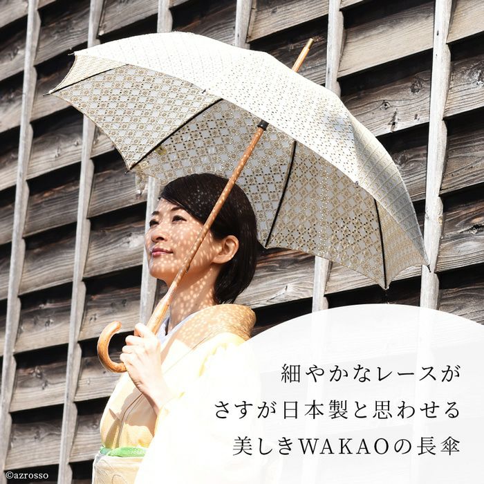 東京老舗の傘工房ワカオから美しいダイヤレースの日傘。持ち手は籐(とう)中棒は樫(かし)の木の天然素材 ワカオ 日傘 長傘 刺繍レース 日本製 WAKAO コットン 綿100 ウッドハンドル