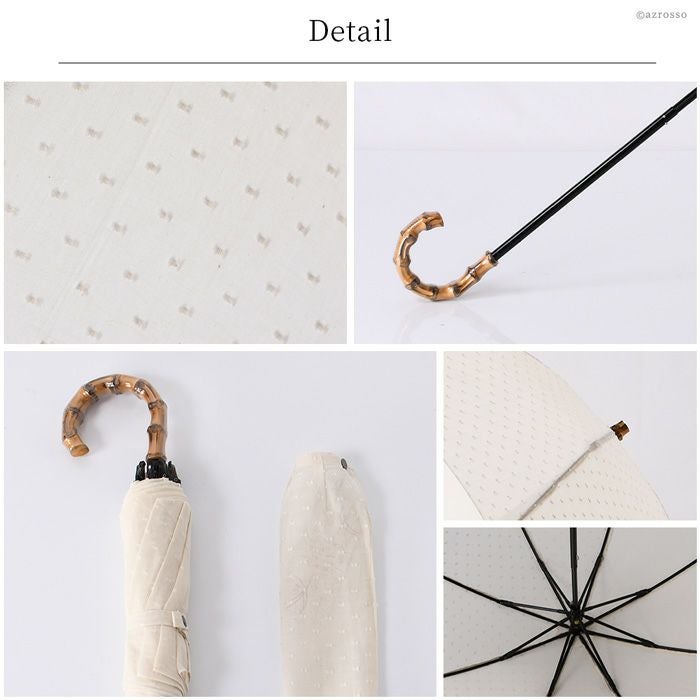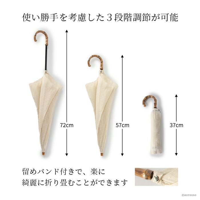 織模様のクールなドット刺繍と上品な透け感がアクセント。東京老舗の傘工房ワカオの布製折りたたみ日傘 和装にも似合う高級感 ワカオ 日傘 折りたたみ ドット柄 日本製 WAKAO コットン100 バンブーハンドル 寒竹 国産のおしゃれな白い日傘
