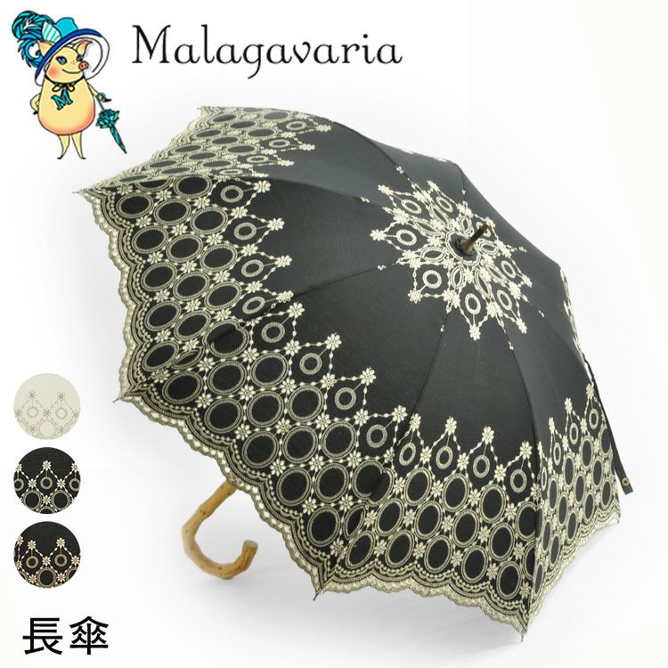 花柄×レース刺繍が美しい日傘「バティックレース」。 和装 着物 浴衣にも似合うレトロデザイン 裏側にブラックコーティングを施しUVカット率 99%以上 Malagavariaの刺繍傘は母の日プレゼントにもおすすめ/ 日傘 レース 長傘 刺繍 バティックレース 花柄 ブラック 黒 ホワイト 白 ネイビー 紺 マラガバリア
