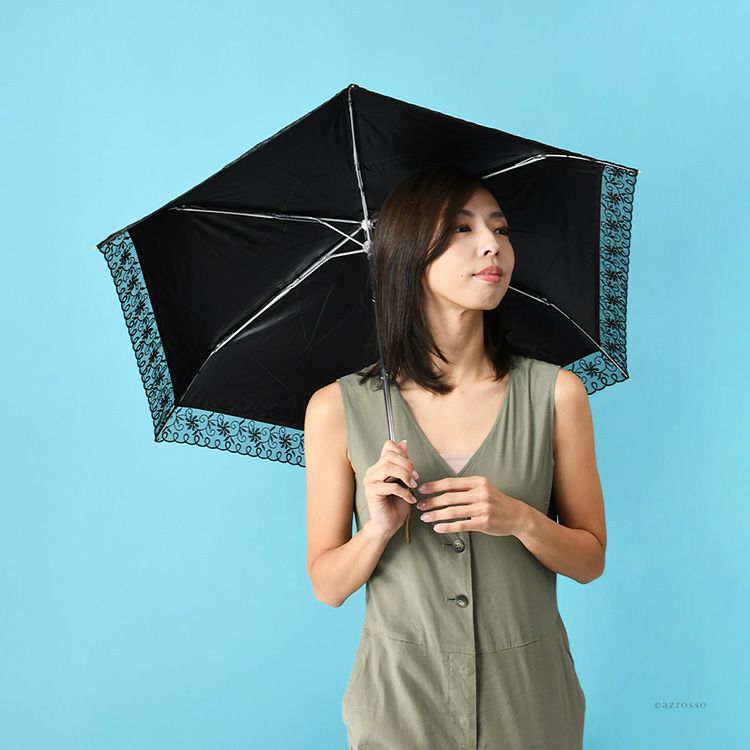 可憐で上品なガーデンフラワー刺繍の日傘。遮光率99.99%・UVカット率99.9%・遮熱効果あり。和装・着物・浴衣にも似合うMalagavaria(マラガバリア)の美しい折りたたみ傘 刺繍 日傘 折りたたみ傘 一級遮光 花柄 UVカット ブラックコーティング 遮熱 涼しい 軽量 50cm レディース ガーデンフラワー刺繍