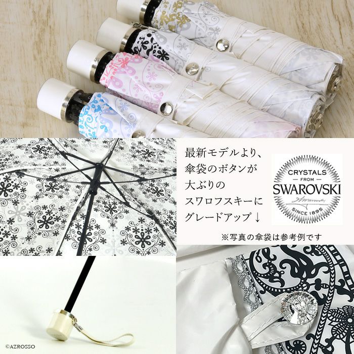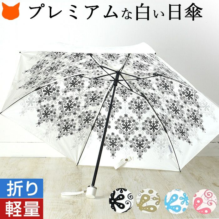 クリスタル柄 日傘 折りたたみ 晴雨兼用 UVION ユビオン プレミアムホワイト 日本製 白でもUVカット99% 驚きの殺菌力と抗菌力をもつ日傘