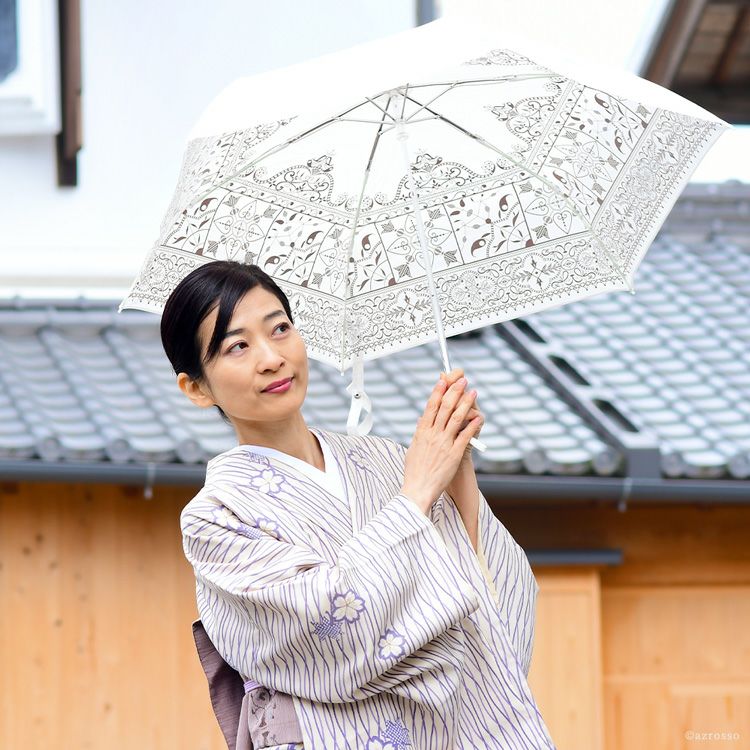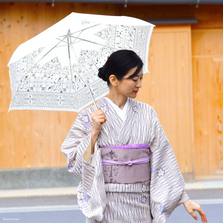 爽やかで涼しげな白い日傘は、夏の訪問着、着物などの和装スタイルにもぴったり。