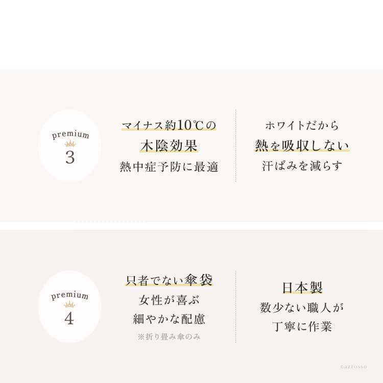 UVカット効果が高いのは、当たり前!紫外線対策だけでなく、暑さ対策ができる遮熱・遮光率の高い、清涼効果のある日傘がおすすめです。