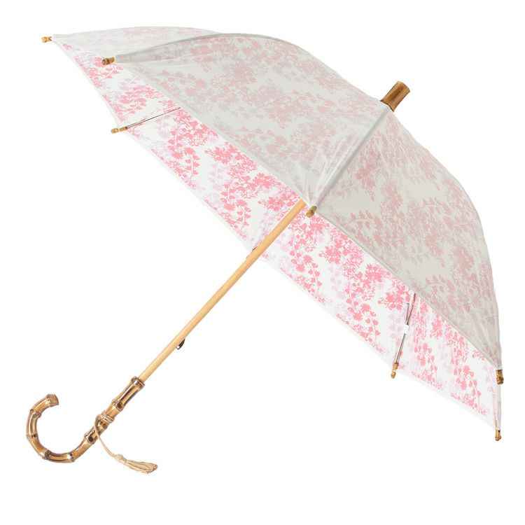 思わず目を奪われる、エレガントな日傘に。受け骨がサクラの形になっているのもさりげないワンポイントです。