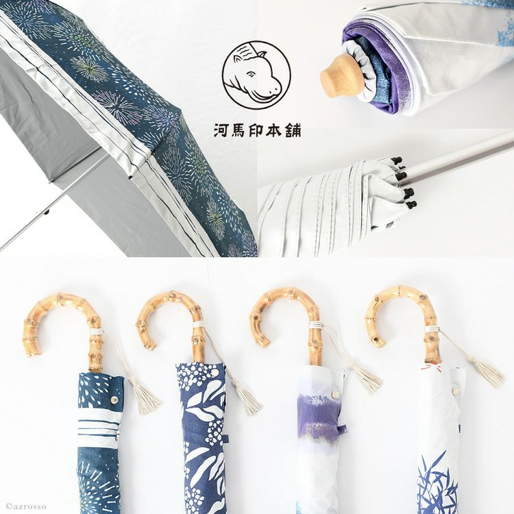 河馬印本舗(かばじるしほんぽ)が手掛ける傘一面に広がる上品な和柄が美しい涼やかな折りたたみ日傘 共通ブランド画像