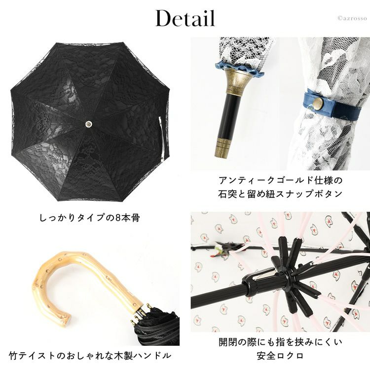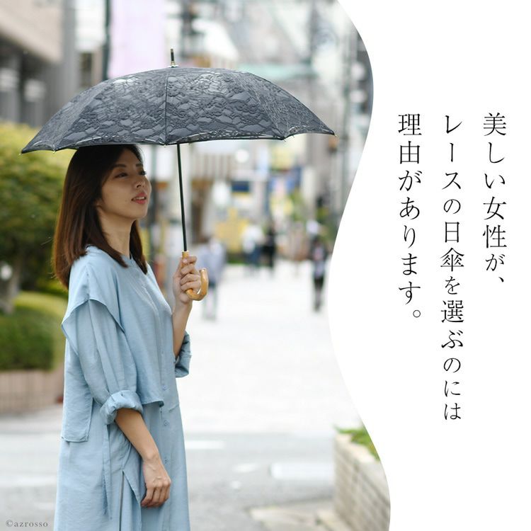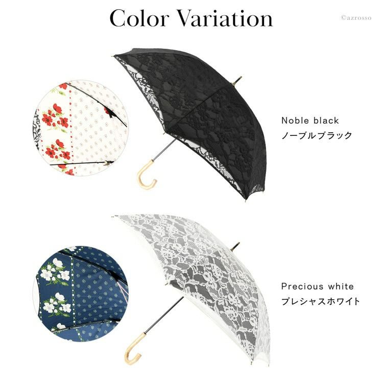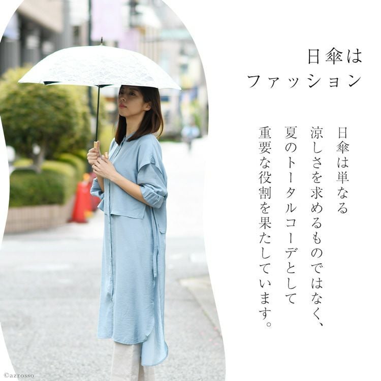 晴雨兼用 日傘 レース 長傘 ラッセルレース さくら骨 二重張りレース 花柄 マラガバリア ラ・クルール