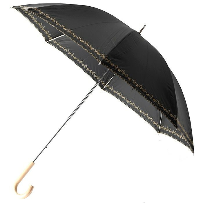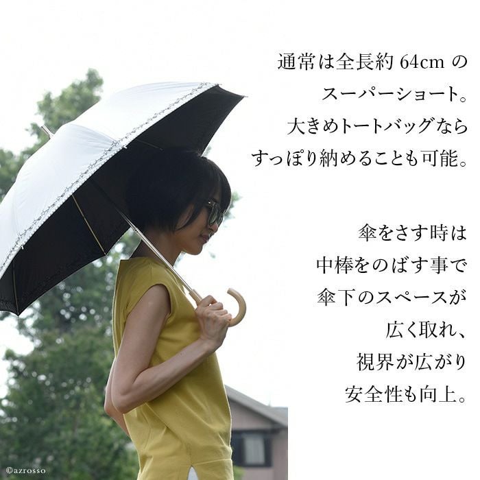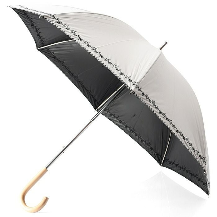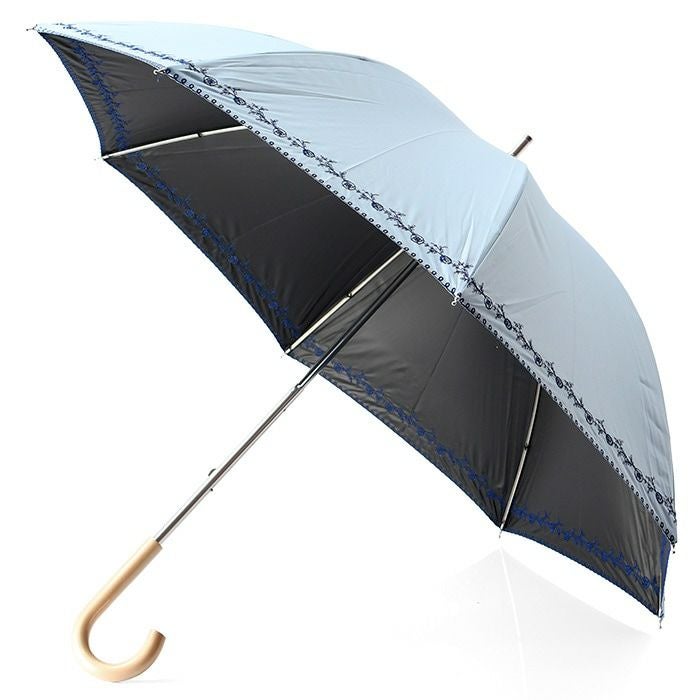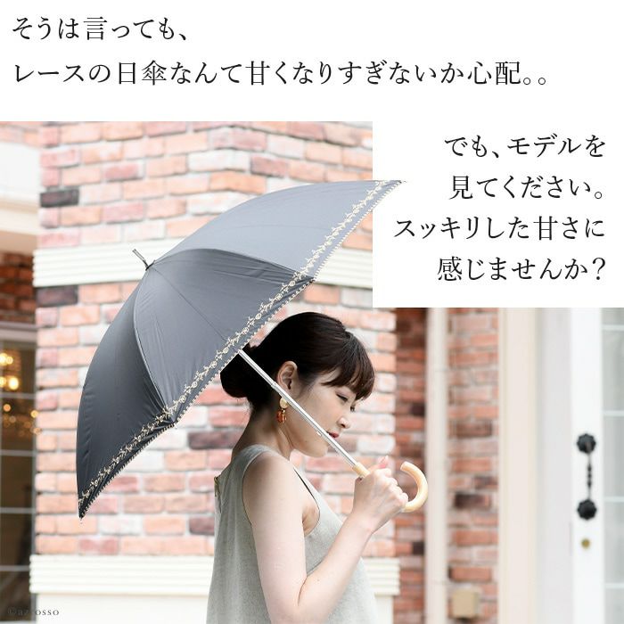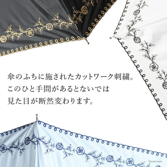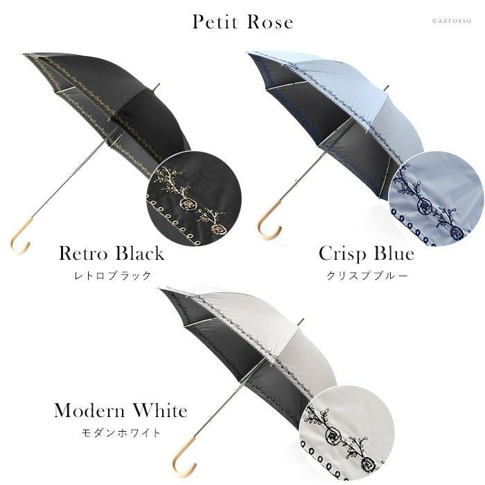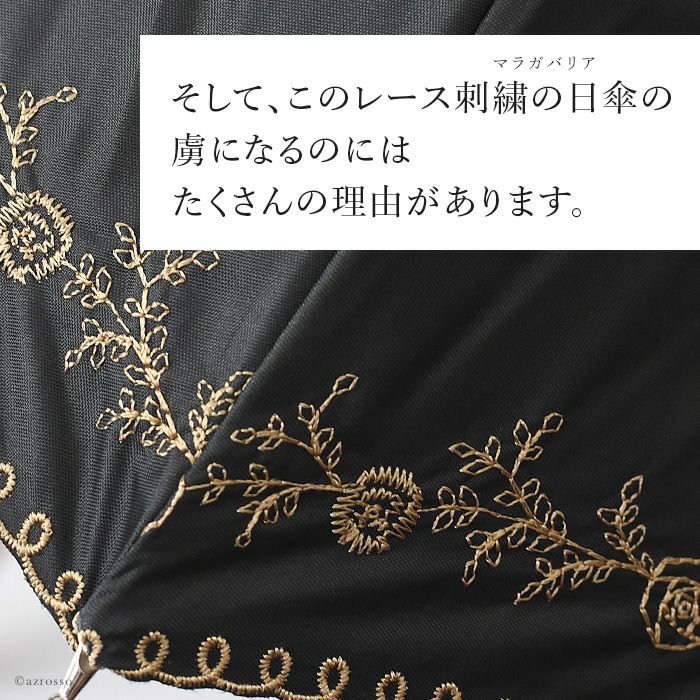 日傘 レース 長傘 刺繍 プチローズ 花柄 バラ フラワー ショートスライド ブラック 黒 サックス ブルー オフホワイト 白 マラガバリア