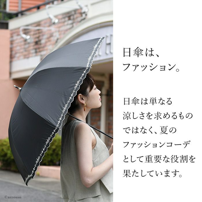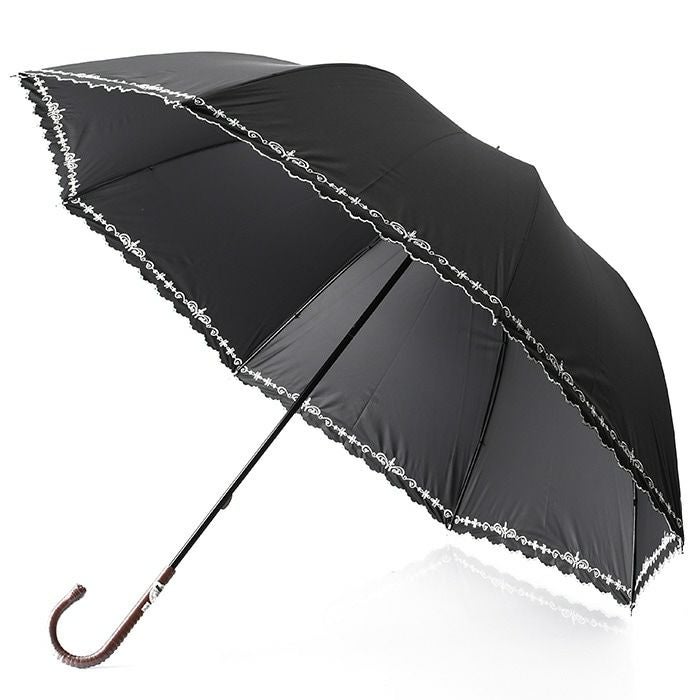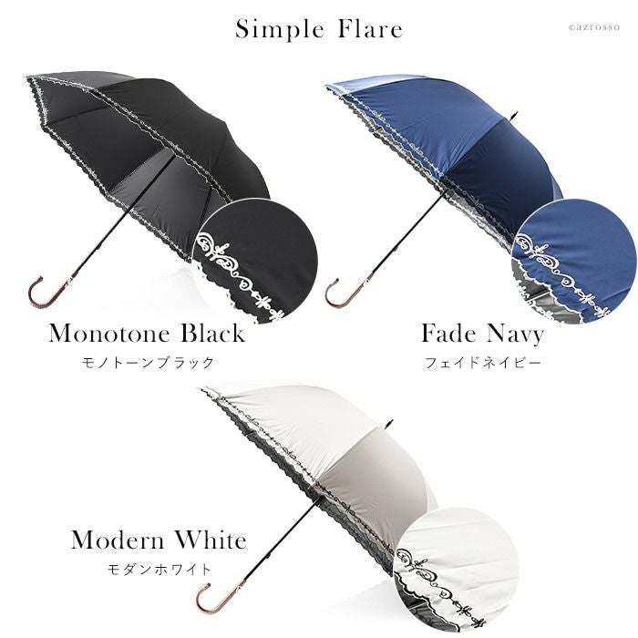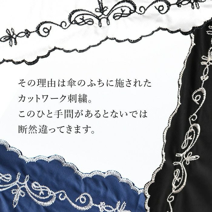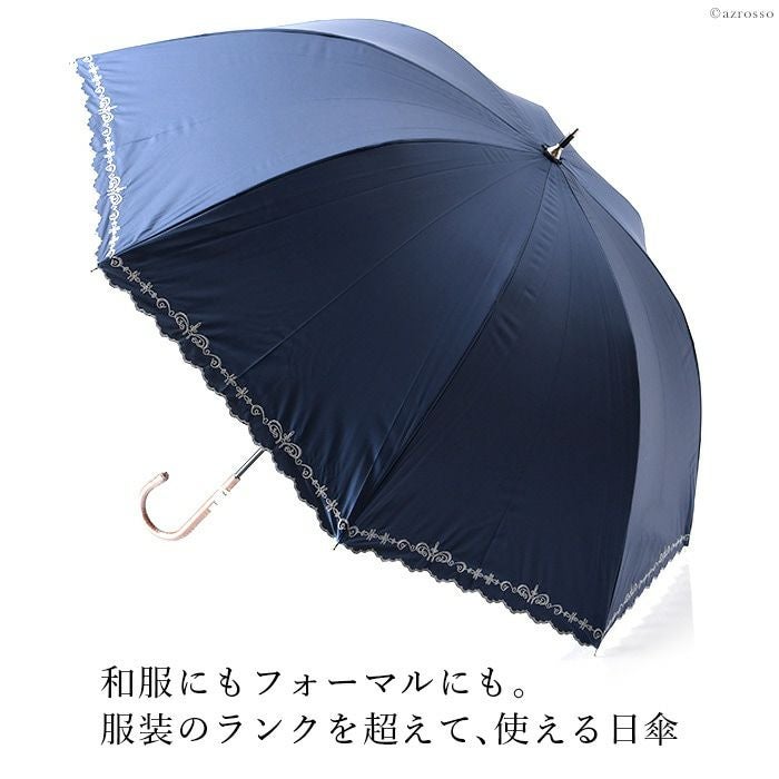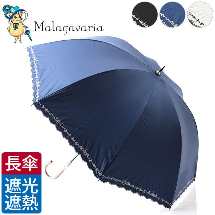 日傘 レース 長傘 刺繍 シンプルフレア 大判 ドーム型 ブラック 黒 ネイビー 紺 オフホワイト 白 マラガバリア