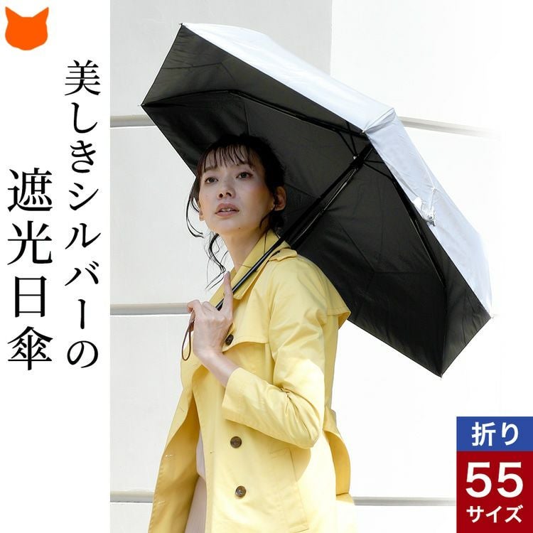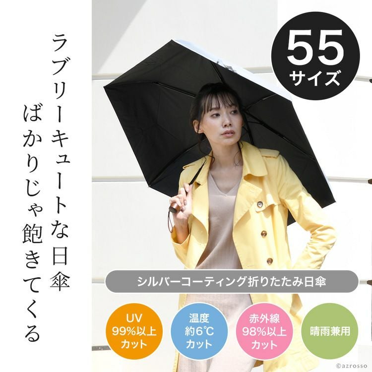 UVカット99%以上! UVION シルバーコーティング 折りたたみ日傘 55 サイズ 遮光 体感温度マイナス6度 遮熱効果 ひんやり 涼しい 黒 大きめ 日傘