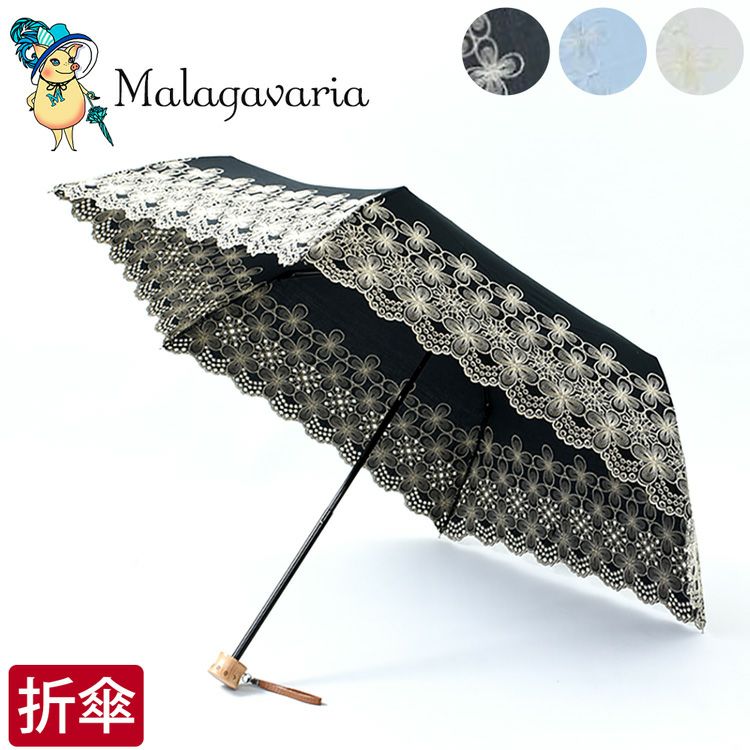 花柄×レース刺繍が美しい日傘「バティックレース」。 50cmミニサイズで携帯用に最適 裏側にブラックコーティングを施しUVカット率 99%以上 Malagavariaの刺繍折り畳み傘は母の日プレゼントにもおすすめ/ 日傘 レース 折りたたみ 刺繍 バティックレース 花柄 軽量 簡単 開閉 ブラック 黒 ホワイト 白 ネイビー 紺 マラガバリア