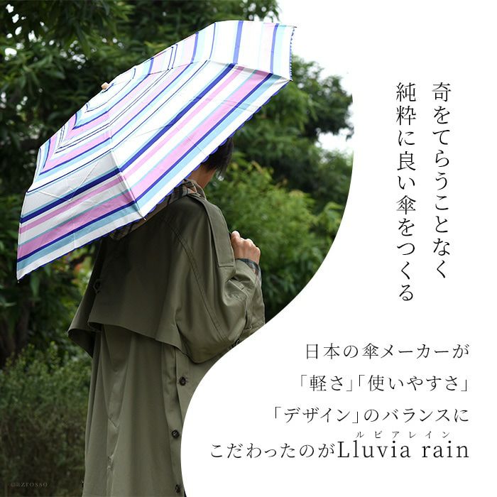北欧テイストのボーダーがおしゃれな折り畳み傘。簡単開閉&UVカット率99%以上で日傘としても使える優れもの。クールでかっこいい大人女性の為の傘ブランド Lluvia rain (ルビアレイン)/ マルチボーダー 雨傘 ボーダー柄 折りたたみ傘 晴雨兼用 傘 レディース 軽量 ネイビー 紺 レッド 赤 ピンク ブルー 青