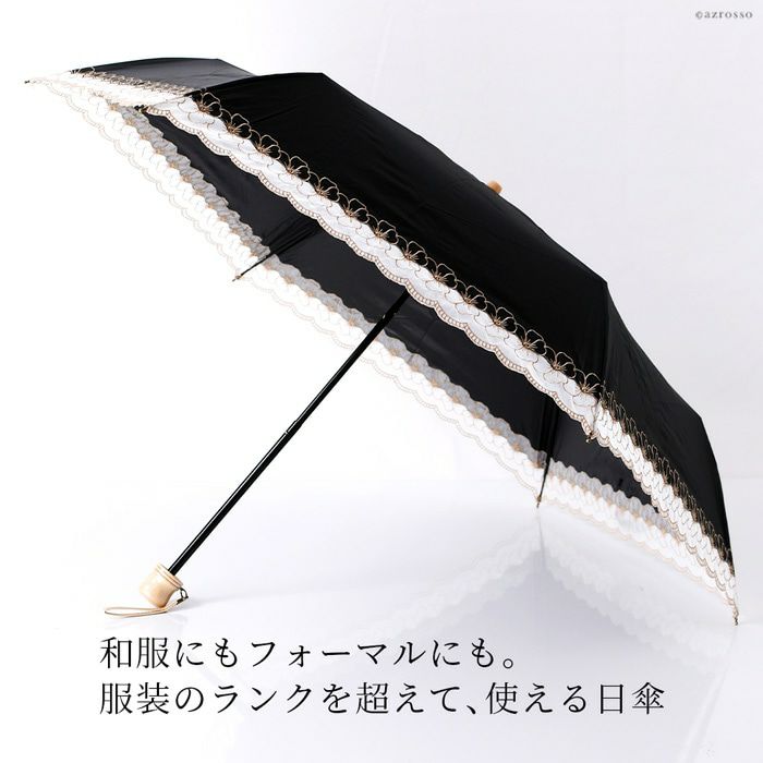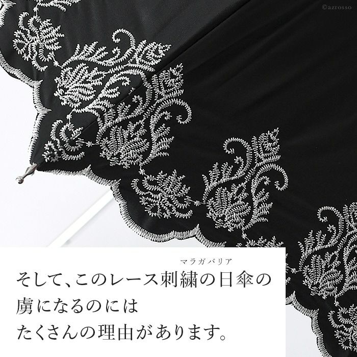 レース刺繍が美しい日傘「フレアオーナメント」 和装 着物 浴衣にも似合うレトロデザイン 裏側にブラックコーティングを施しUVカット率 100% Malagavariaの刺繍傘 日傘 レース 長傘 刺繍 フレアオーナメント ショートスライド ブラック 黒 ネイビー 紺 オフホワイト 白 マラガバリア