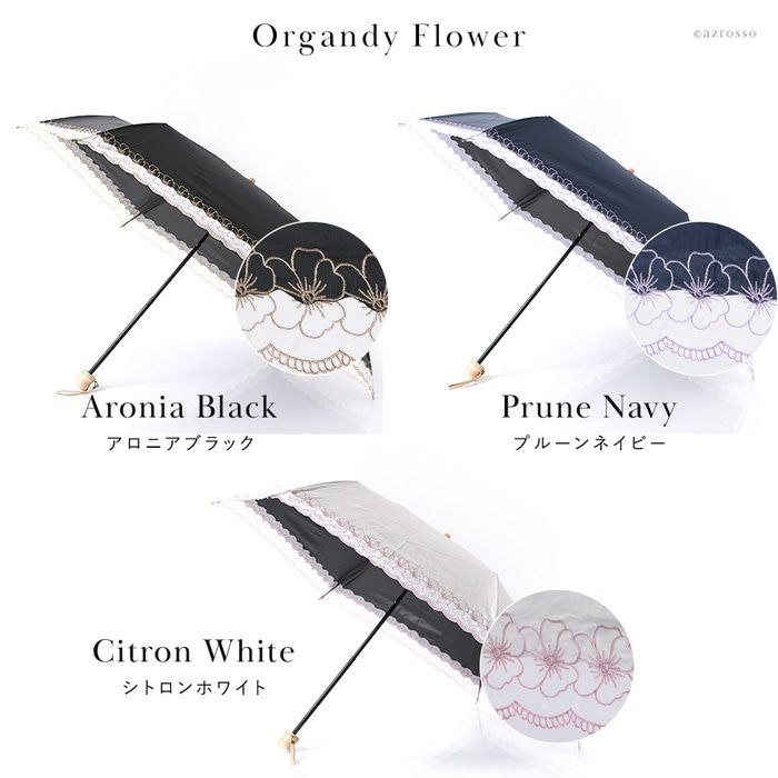 レース刺繍が美しい日傘「オーガンジーフラワー」。 和装 着物 浴衣にも似合うレトロデザイン Malagavariaの折り畳み傘は誕生日プレゼントにもおすすめ/ 日傘 レース 折りたたみ 刺繍 オーガンジーフラワー 花 柄 フラワー ブラック 黒 ネイビー 紺 オフホワイト 白