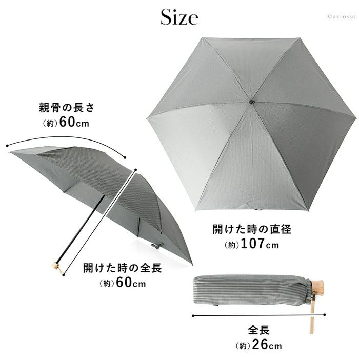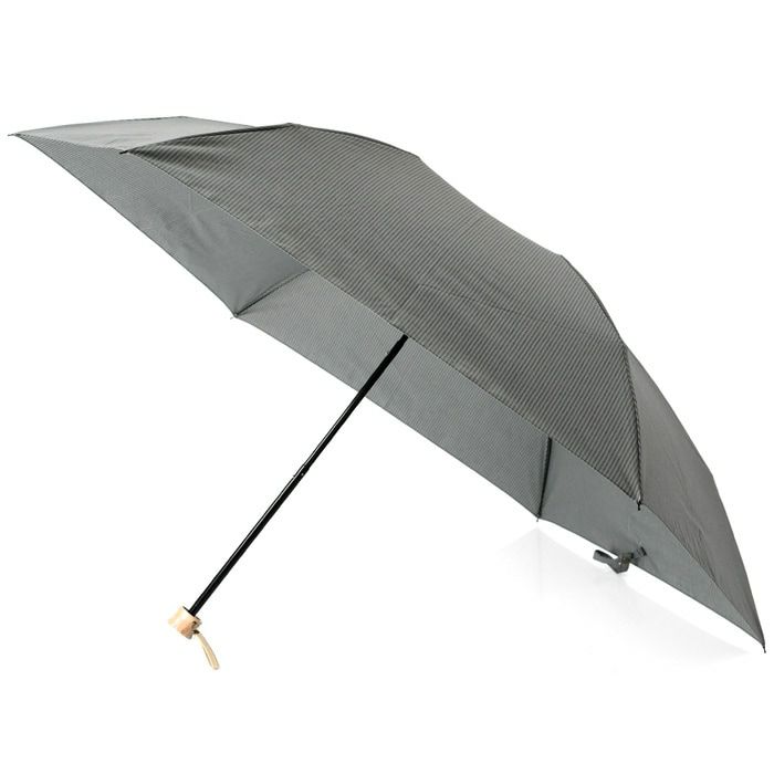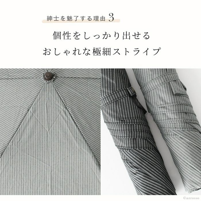 しっかりした生地と木製ハンドルの天然素材が紳士を魅了する折り畳み傘。ポキポキ骨を折ってたたむタイプ メンズ 極細ストライプ 折りたたみ 3段折り 晴雨兼用 UVカット 大きめ 6本骨 60サイズ 紳士用 雨傘 日傘