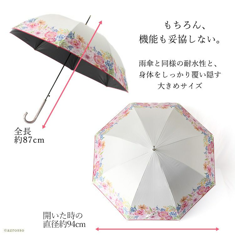 ローズガーデンという名のおしゃれな晴雨兼用傘。すっきりフォルムの長傘、大きいサイズなのに軽量、ワンタッチのジャンプ傘。簡単開閉&完全遮光 日傘 完全遮光 長傘 晴雨兼用 傘 軽量 8本骨 遮光率100% uvカット 花柄 一級 遮光 遮熱 レディース ブランド 雨傘 おしゃれ バラ ピンク アイボリー ベージュ 簡単開閉 誕生日 プレゼント ギフト 20代 30代 40代 50代 60代