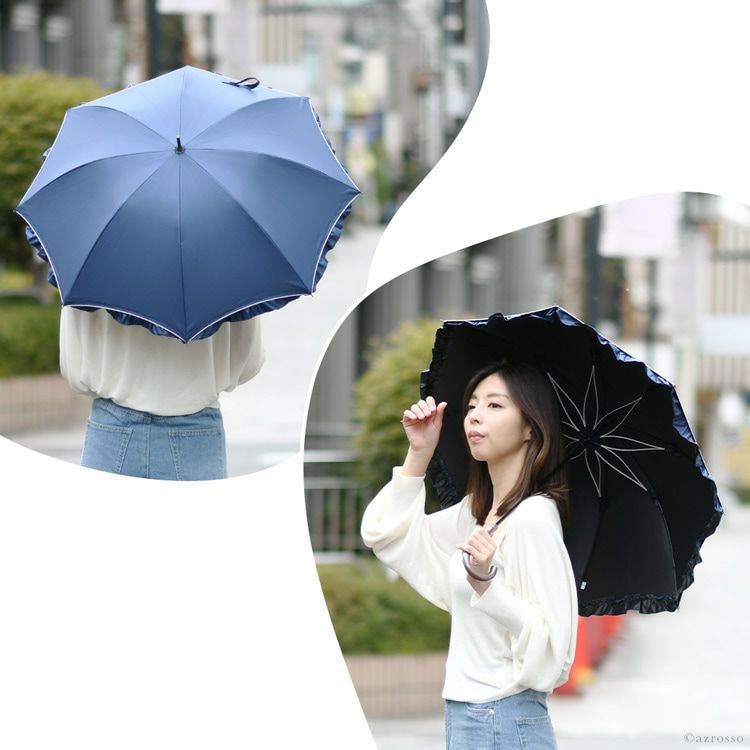 アーチカットとフリルが美しい晴雨兼用日傘 和装 着物 浴衣にも似合う 花柄 裏側ブラックコーティングでUVカット率100% 母の日やお誕生日のプレゼントやギフトにも 晴雨兼用 日傘 フリル 長傘 遮光 遮熱 お洒落に紫外線対策 さくら骨 マラガバリア