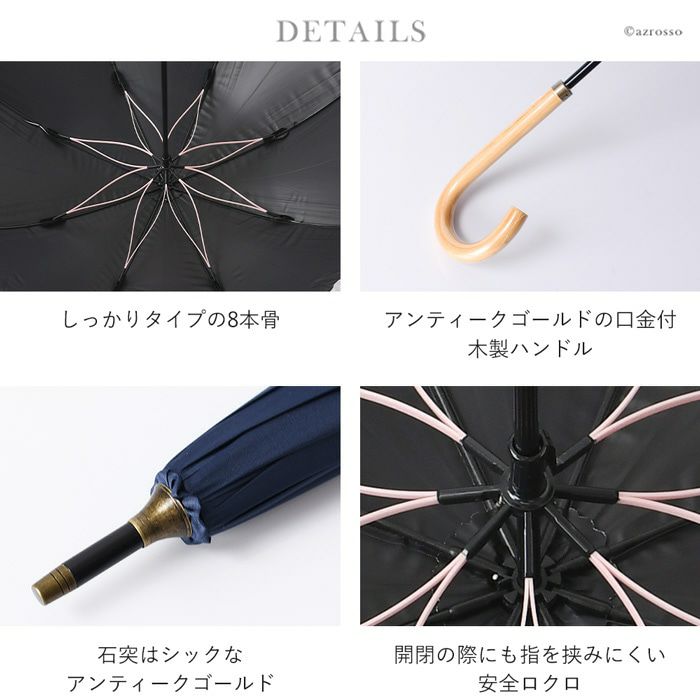 紫外線カット99%以上 遮熱効果 モダン&和テイストの丈夫な長傘 16本骨 晴雨兼用 長傘 サクラ刺繍 シルバーコーティング 雨傘 日傘 ジャンプ式 55cm ルビアレイン