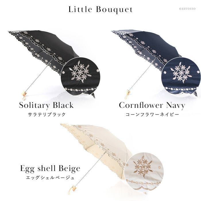 レース刺繍が美しい日傘「リトルブーケ」。 和装 着物 浴衣にも似合うレトロデザイン Malagavariaの折り畳み傘は誕生日プレゼントにもおすすめ/ 日傘 レース 折りたたみ 刺繍 リトルブーケ 花 柄 フラワー ブラック 黒 ネイビー 紺 ベージュ