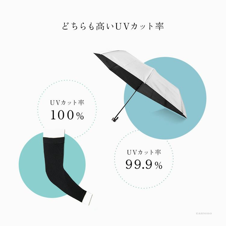遮光と清涼の二重奏、日焼け対策と紫外線対策をしつつひんやり涼しいUVカットほぼ100%の日傘とアームカバーのセットが登場。単品購入より断然お得な「UV遮光クールセット」 UV遮光クールセット 折りたたみ日傘 アームカバー 冷感 ロング丈 ひんやり涼しい 傘 60cm 大判 レディース