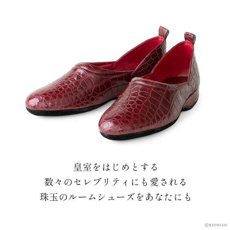 皇室御用達職人がつくる珠玉のクロコダイルスリッパ(かかと付き)。足と一体化するような快適な履き心地。日本製、抗菌・防臭・除電効果ありのレディースルームシューズ。名入れ刺繍対応 日本製 高級 クロコダイル ルームシューズ かかとあり かかと付き スリッパ レディース 軽い 革 歩きやすい 室内