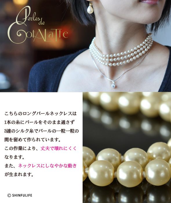 フランス製 ロング パール ネックレス Perles de Cotalatte パールドコタラッテ 1連 2連 3連使いのパールネックレス 6mm カジュアル ブランド 結婚式 入園式 入学式 冠婚葬祭 卒園式 シャンパンゴールド 結び方 長さ アレンジ コーデ