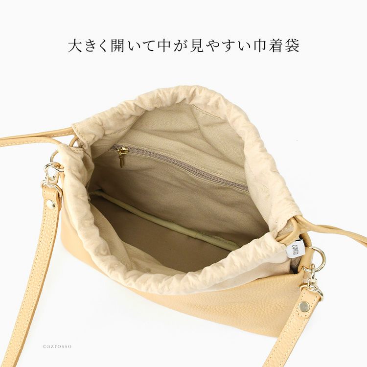 日本製 巾着バッグ レディース 2way ミニ ショルダーバッグ おしゃれ レザー 斜めがけ 本革 小さめ 軽量 巾着 ショルダー ポシェット ドロストバッグ