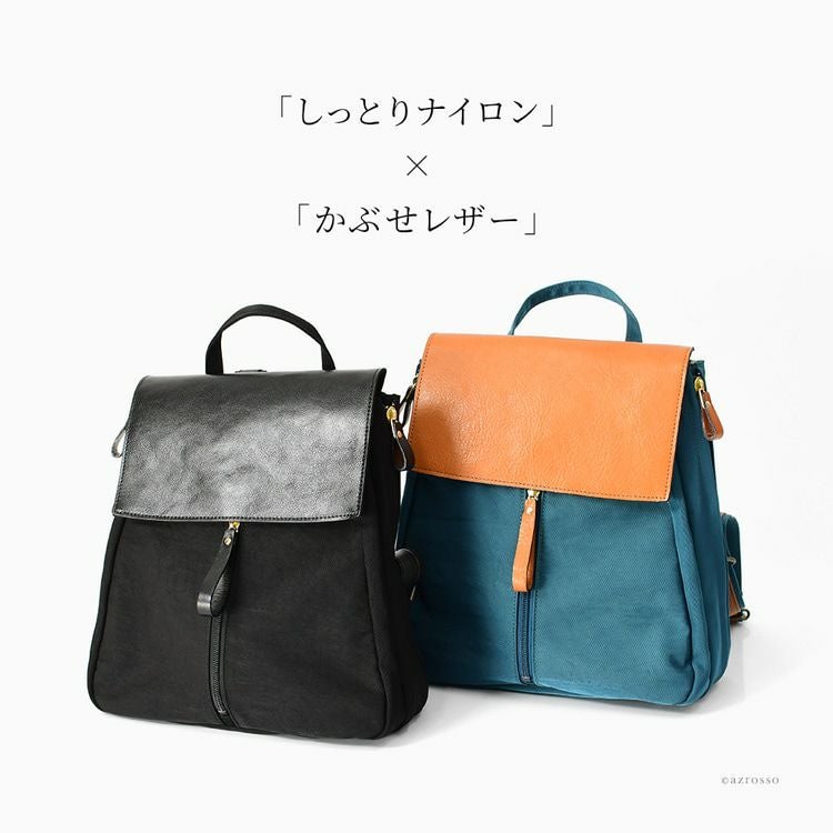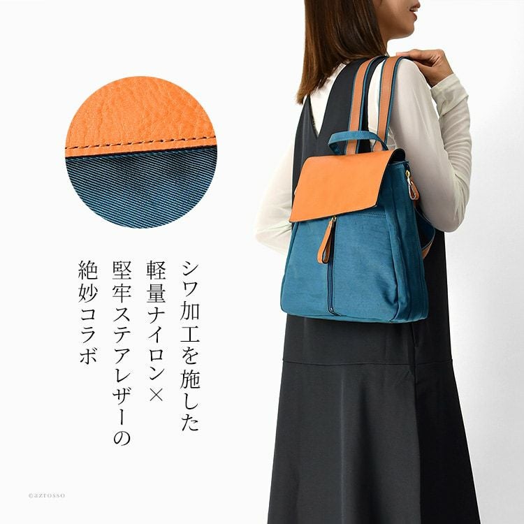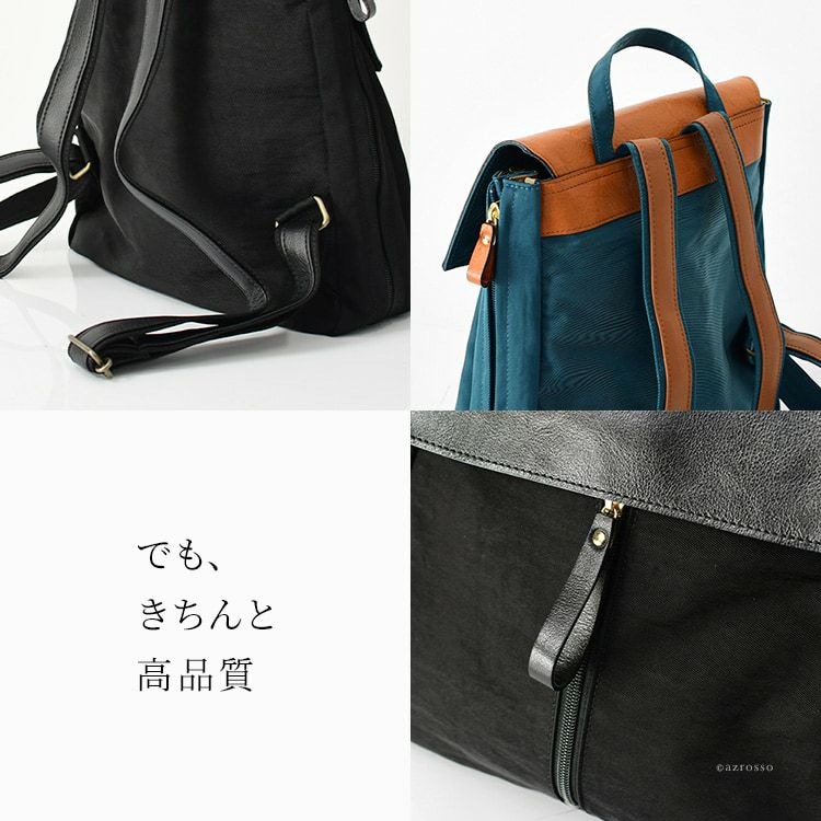 日本製 本革 ナイロン リュック 軽量 スクエア レザー ブランド レディース 豊岡 鞄 豊岡工房 水色 ブラック ブルー マチ広 カジュアル