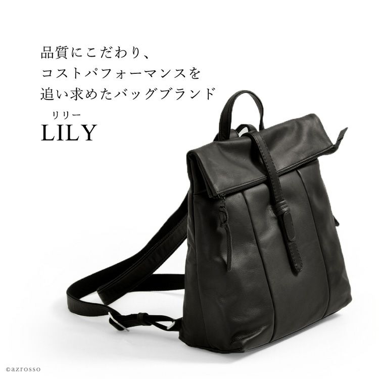 LILY リリー|柔らかいカーフレザーが大人の着こなしを格上げするレザーリュックサック 日本製 本革レザーリュック 黒 ブラック レディース ブランド 軽量 軽い 大人 きれいめ おしゃれ 普段使い お出かけ 旅行 自転車通勤にもおすすめ