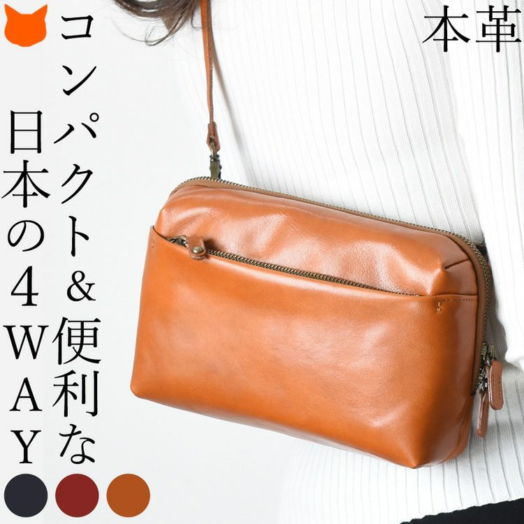 コンパクトサイズの上質レザーバッグ 4way レディース 通勤 お仕事 出張 旅行 カジュアルなお出かけ 普段使い 必要最小限の収納力 日本ブランド 本革 ブラック 黒 キャメル レッド 赤 グリーン ブラウン / 日本製 ポシェット ショルダーバッグ 軽量 500g以下バッグ 軽い 4Way ミニバッグ