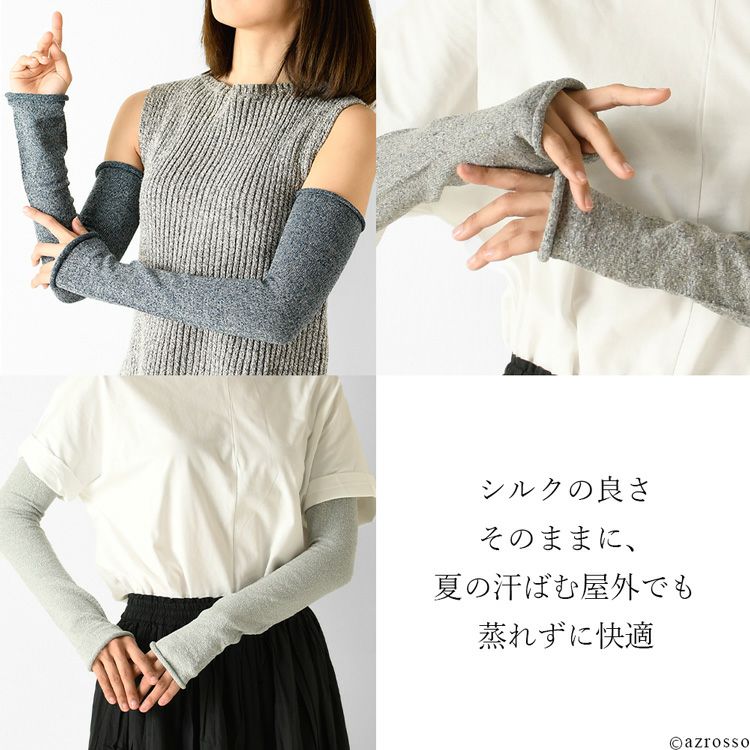 ▼特徴:シルク100 絹 腕 二の腕 手首 アーム ウォーマー カバー 付け 袖 ロング 重ね着 長袖 日除け 日焼け対策 日焼け防止 冷え防止 冷え性 冷え対策 冷房対策 タトゥー隠し 入れ墨隠し 刺青隠し 締め付けない 跡が残らない