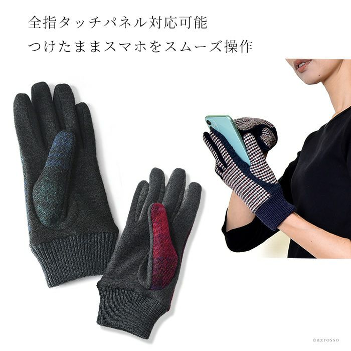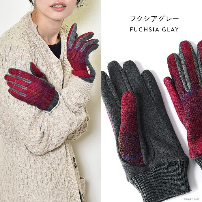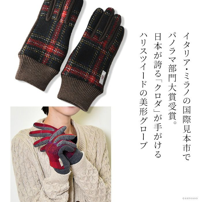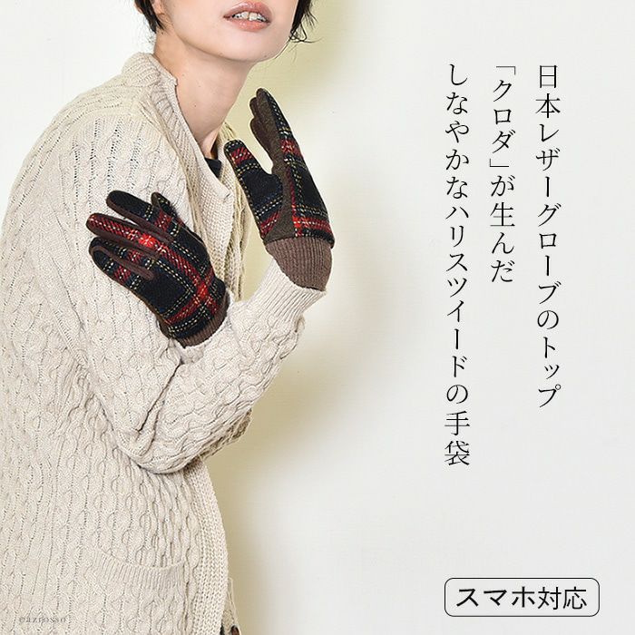 スマホ対応 クロダ ハリスツイード 手袋 レディース タッチパネル対応 通電 抗菌 グローブ クロダ ブランド HarrisTweed【通常ネコポス配送】